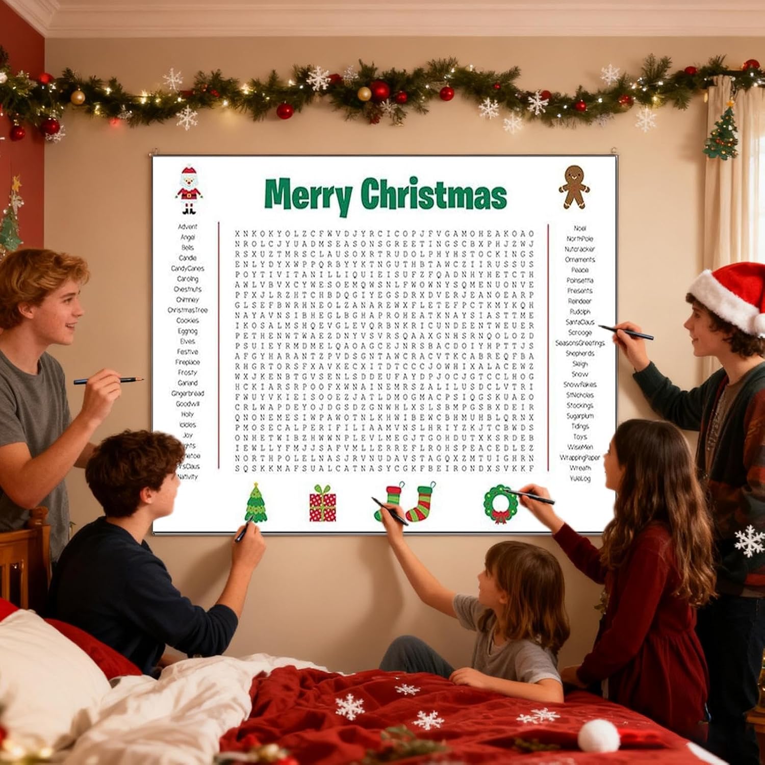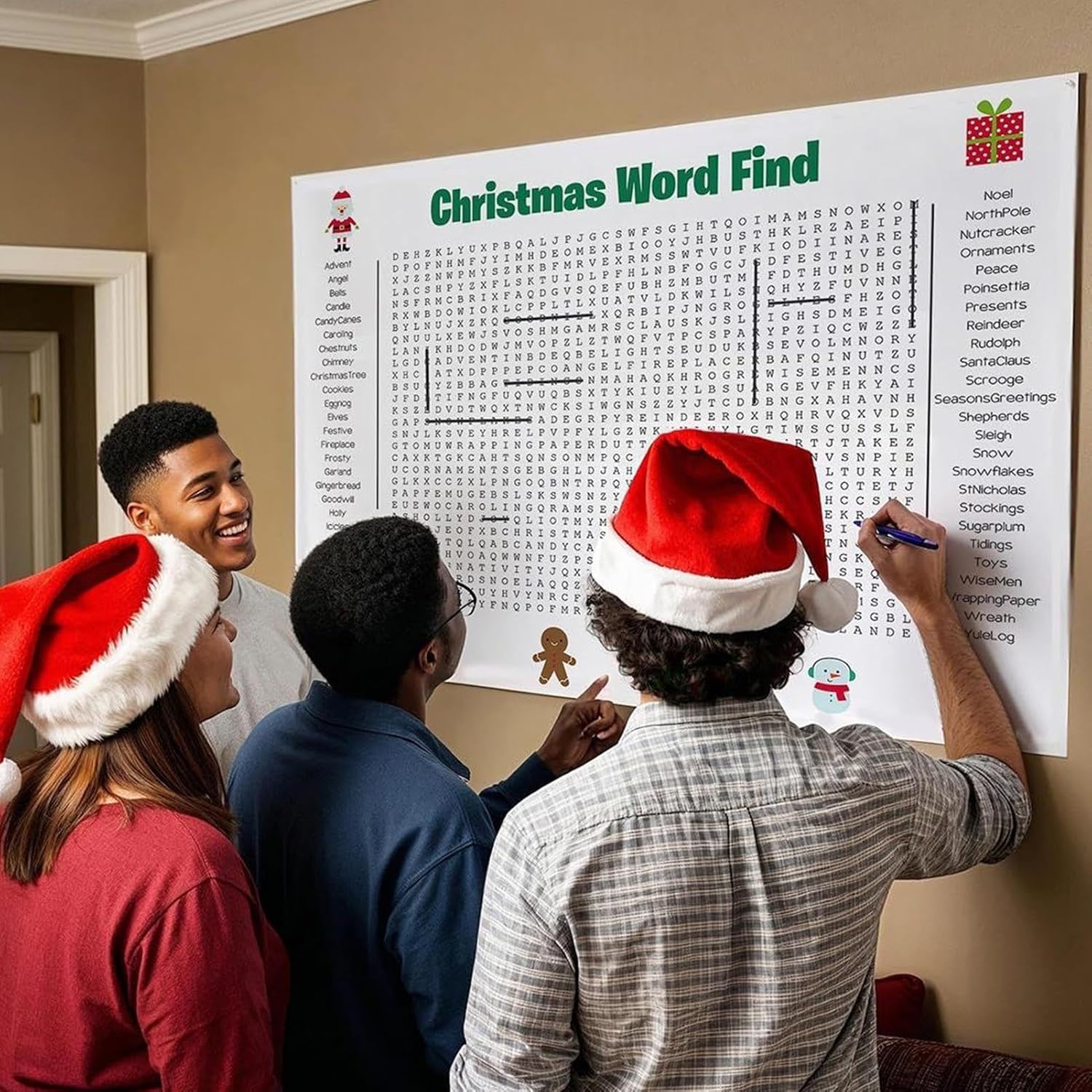 Materiale Sicuro: Combinando funzionalità riutilizzabile e un aspetto festivo accattivante, questo poster di ricerca parole per il Thanksgiving è realizzato in carta spessa che resiste a manipolazioni frequenti, aggiungendo charme a raduni stagionali o ambienti educativi. La sua durabilità offre divertimento sicuro e prolungato, per momenti di condivisione in famiglia o a scuola. Decorazione Domestica Innovativa: Grazie al suo concept innovativo, questo poster cerca parole di grandi dimensioni per abbellire le pareti dona charme a soggiorni, aule e spazi lavorativi, funzionando egregiamente come decorazione vibrante per feste o come elemento distintivo per le vacanze. Ispira gioia e connessione in vari ambienti, creando atmosfere accoglienti e stimolanti per eventi sociali e momenti ricreativi in casa, scuola o ufficio con un design moderno e coinvolgente. Divertimento Natalizio senza Schermo: Il poster di ricerca parole natalizio incentiva risate e gioia grazie alla sua progettazione interattiva e di schermo, rappresentando strumento eccellente per impieghi in famiglia, in aula o in ufficio, al contempo promuovendo relazioni più solide tra i partecipanti in ogni contesto festoso attraverso un gioco coinvolgente che unisce le persone in modo naturale e spontaneo. Centro Interattivo per Raduni: Un poster di word search gigante serve da punto centrale per occasioni festive, promuovendo il lavoro di e la stimolazione mentale tra ospiti di tutte le età durante le celebrazioni del Ringraziamento e del Natale, aggiungendo calore alle tue tradizioni stagionali e incoraggiando la collaborazione in un ambiente ludico e inclusivo per tutti. Passatempo di Gruppo : Il cerca parole per bagno propone 50 parole a tema vacanze, avvicinando bambini, adulti e anziani mediante il lavoro di , l'apprendimento, la competizione e interazioni sociali arricchenti. Migliora i momenti durante le festività o gli incontri informali, creando un'esperienza coinvolgente che unisce le generazioni e garantisce divertimento autentico e costruttivo per tutti i partecipanti.