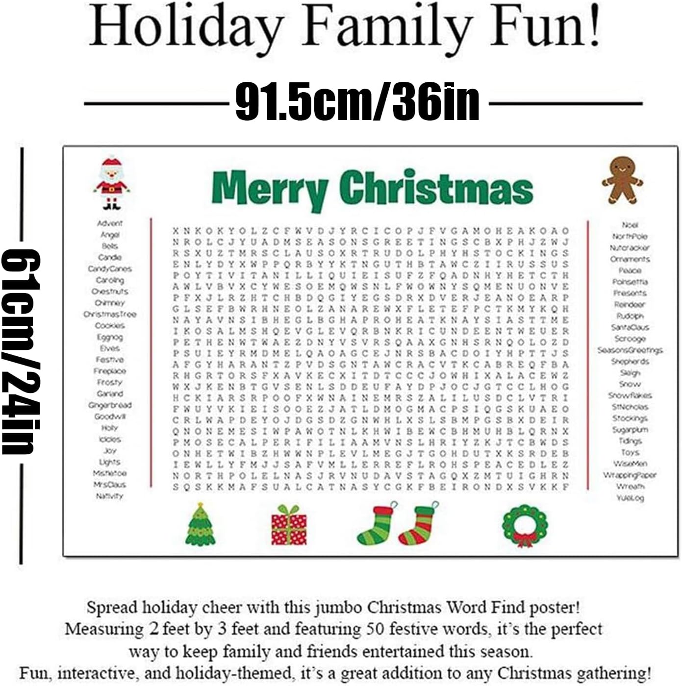 Materiale Sicuro: Combinando funzionalità riutilizzabile e un aspetto festivo accattivante, questo poster di ricerca parole per il Thanksgiving è realizzato in carta spessa che resiste a manipolazioni frequenti, aggiungendo charme a raduni stagionali o ambienti educativi. La sua durabilità offre divertimento sicuro e prolungato, per momenti di condivisione in famiglia o a scuola. Creatività e Funzionalità Unite: Il poster cerca parole di grandi dimensioni per decorazione parete combina creatività e funzionalità, offrendo interesse visivo in soggiorni, aule e luoghi di lavoro, mentre si trasforma senza sforzo in decorazioni affascinanti per feste o accenti a tema vacanza. Migliora eventi stagionali con la sua versatilità, aggiungendo un elemento dinamico e piacevole per ambienti domestici o professionali durante celebrazioni e momenti di festa con familiari e colleghi. Divertimento Natalizio senza Schermo: Il poster di ricerca parole natalizio incentiva risate e gioia grazie alla sua progettazione interattiva e di schermo, rappresentando strumento eccellente per impieghi in famiglia, in aula o in ufficio, al contempo promuovendo relazioni più solide tra i partecipanti in ogni contesto festoso attraverso un gioco coinvolgente che unisce le persone in modo naturale e spontaneo. Divertimento Familiare Festivo: Il poster di word search gigante offre ore di divertimento coinvolgente per tutte le età, migliorando le abilità cognitive e creando momenti gioiosi durante le riunioni del Ringraziamento e del Natale, rendendolo un'attività ideale per rafforzare i legami con i propri in un'atmosfera e promuovendo un intrattenimento sano che unisce la famiglia attraverso il gioco condiviso nelle festività. Passatempo di Gruppo : Il cerca parole per bagno propone 50 parole a tema vacanze, avvicinando bambini, adulti e anziani mediante il lavoro di , l'apprendimento, la competizione e interazioni sociali arricchenti. Migliora i momenti durante le festività o gli incontri informali, creando un'esperienza coinvolgente che unisce le generazioni e garantisce divertimento autentico e costruttivo per tutti i partecipanti.