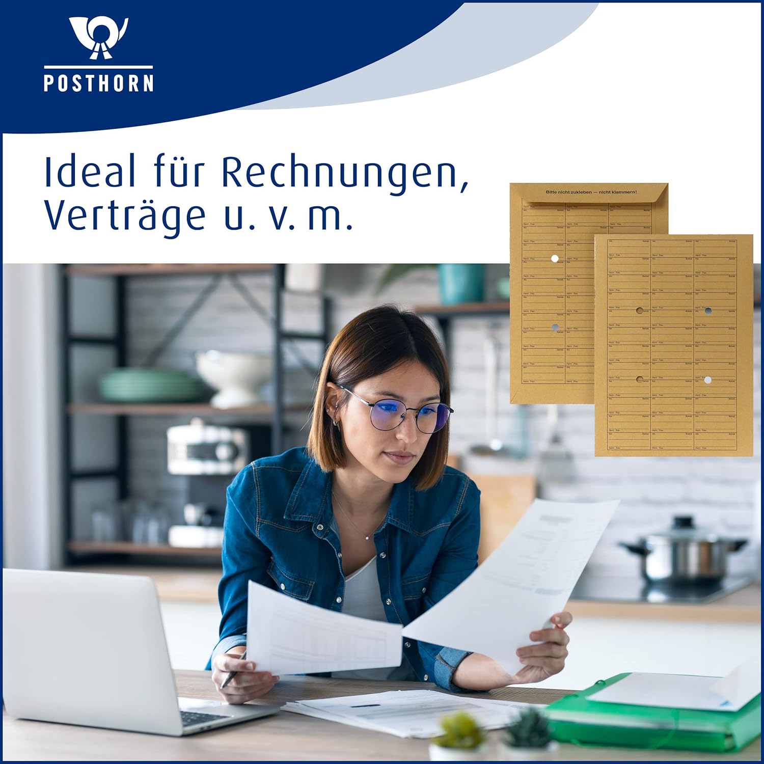 Casa post tasche in formato DIN C4 (229 x 324 mm) Carta da 110 g/m² marrone con tabella Stampa nera Con doppia foratura ungummiert