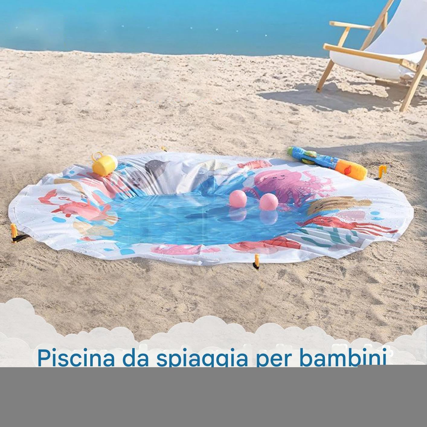 Stimolo Visivo Accattivante: La tavolozza morbida e i disegni cartoon catturano l'attenzione dei bambini, ispirando attività di gioco creative e divertenti attraverso un aspetto invitante Per Piccoli Esploratori: Fornisce un'ampia zona per la creatività, supporta il gioco attivo con sabbia e acqua, mantenendo un design sicuro per bambini che assicura stabilità ad ogni utilizzo. Controllo caratteri: 284 Materiale Durevole: Ideale per ogni tipo di viso, strato inferiore impermeabile, tessuto ad alta densità per durabilità a lungo termine con comfort costante Portatile e Compatta:Questo tappetino da spiaggia è facile da trasportare e riporre, con design pieghevole e sacca inclusa. Leggero e ideale per viaggi e attività all'aperto, garantisce trasporto senza sforzo e risparmio di spazio durante le avventure. Design Moderno: Combina piscina e tappeto in un prodotto adattabile, cresce con le fasi di sviluppo del bambino promuovendo esplorazione creativa durante attività versatili indoor o outdoor per utilità prolungata nel .