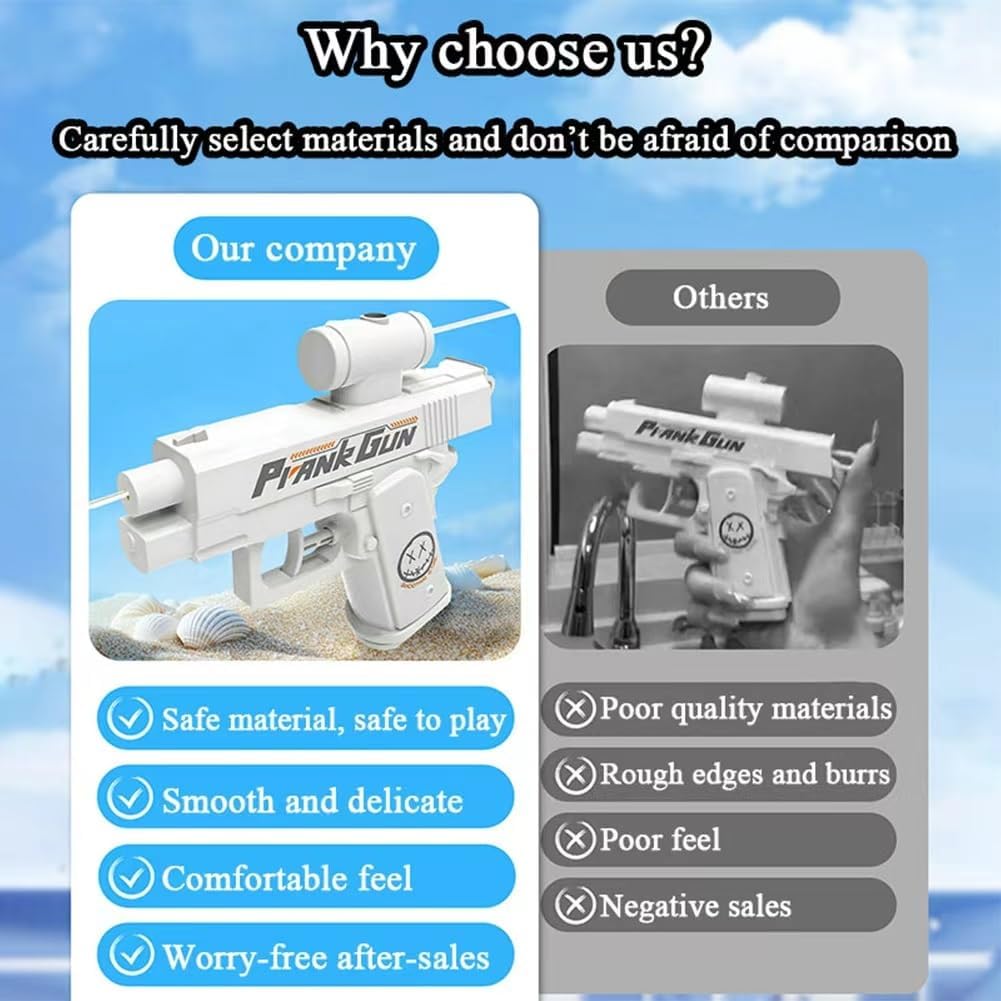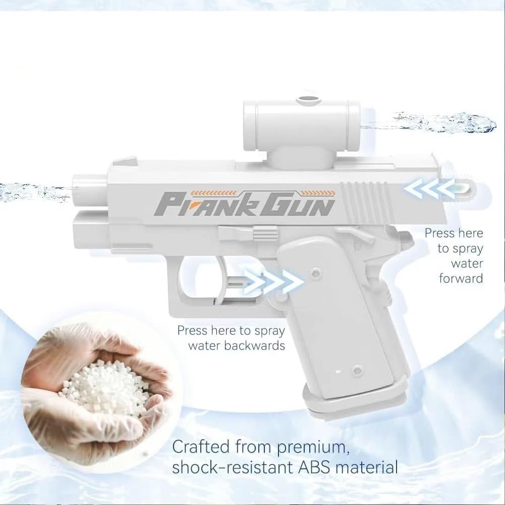 Prank Two-Way Fun: Experience double the fun with the prank water gun that features a two-way spray system. Shoot water from both the front and back, creating unexpected surprises that will leave everyone laughing. This prank water gun shoots backwards and forwards, perfect for pranksters looking to add some chaos at office breaks or school recess Versatile Trick Design: This prank water gun can be used as a traditional squirt gun or as a stunt water gun that catches everyone off guard. The clever design ensures that your friends won’t expect the twist until they get sprayed from both directions—making it the ultimate prank watergun for any gathering Get Social Fun: A quick and surprising water spray from this prank gun water is a great way to break the ice. Whether in the office or during school games, this prank water gun encourages social connections, creates unforgettable memories, and adds excitement to group activities Durable & Easy to Use: Built to last with sturdy, drop-resistant materials, this prank water gun is simple to operate and designed. Perfect for pranks in the office, school, or playground, it’s easy to reload and keep the laughs flowing throughout the day, especially with the playful pink water gun option for extra fun Ultimate Prank Gift: Looking for the perfect gag gift? This two-way prank water gun is sure to deliver hours of fun. Whether for a party, family gathering, or just to surprise friends, it’s an ideal choice for prank lovers who want to add some laughs with a creative and unpredictable water fight