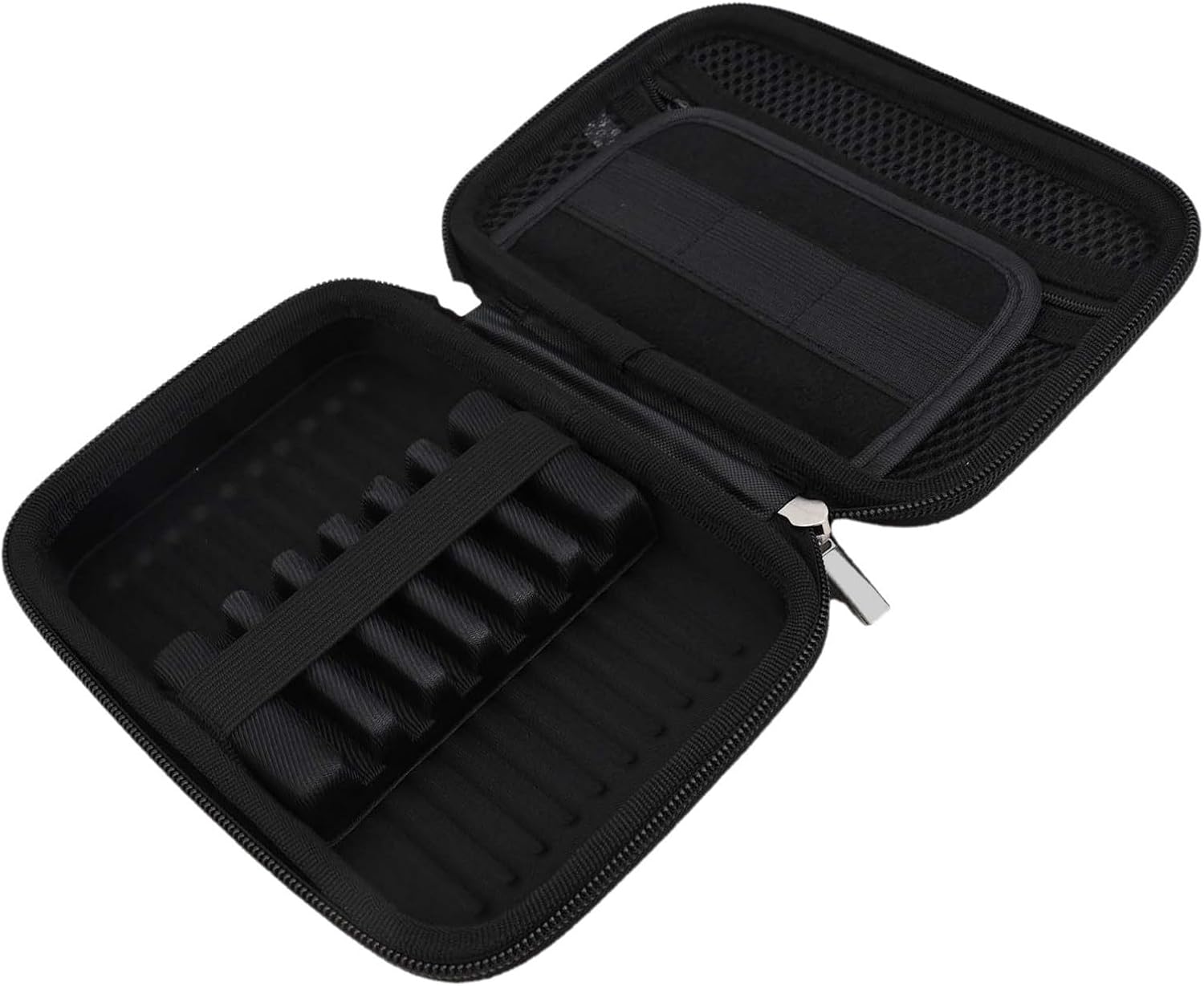 Protettivo: realizzato in materiale EVA duro e dotato di una base di supporto interna, questo organizer per freccette offre una doppia protezione contro i danni, lunga durata. Conservazione: progettata per ospitare freccette con punta in acciaio, punta morbida e punte in plastica, nonché freccette professionali, questa borsa offre ampio spazio per freccette, alberi, alette, punte e altri accessori. Sicuro e compatto: la base in EVA e la fascia elastica alta mantengono le freccette stabili e sicure durante il trasporto. Le dimensioni compatte e il manico robusto lo rendono facile da trasportare ovunque. Comoda accessibilità: dotata di una cinghia da polso per la portabilità e divisori con tasche in rete, questa custodia per freccette consente un accesso rapido e facile alle freccette e agli accessori. Specifiche tecniche: nome del prodotto: custodia per freccette; materiale: EVA; dimensioni esterne: 19 x 13 x 5 cm; dimensioni interne: 17 x 11 x 4,2 cm; colore: nero; peso: circa 220 g.