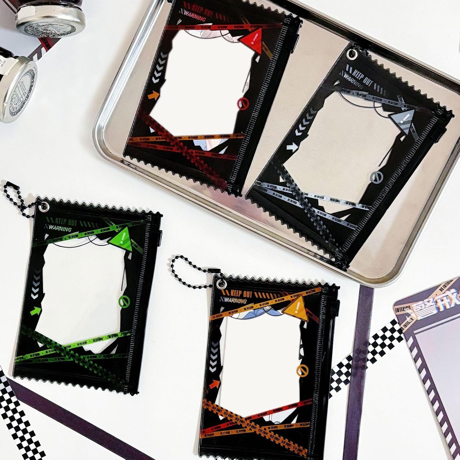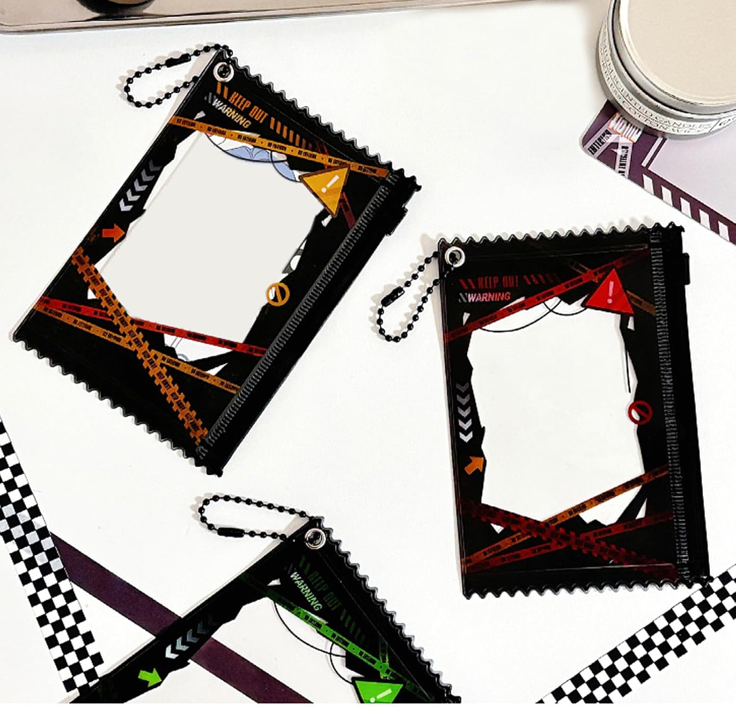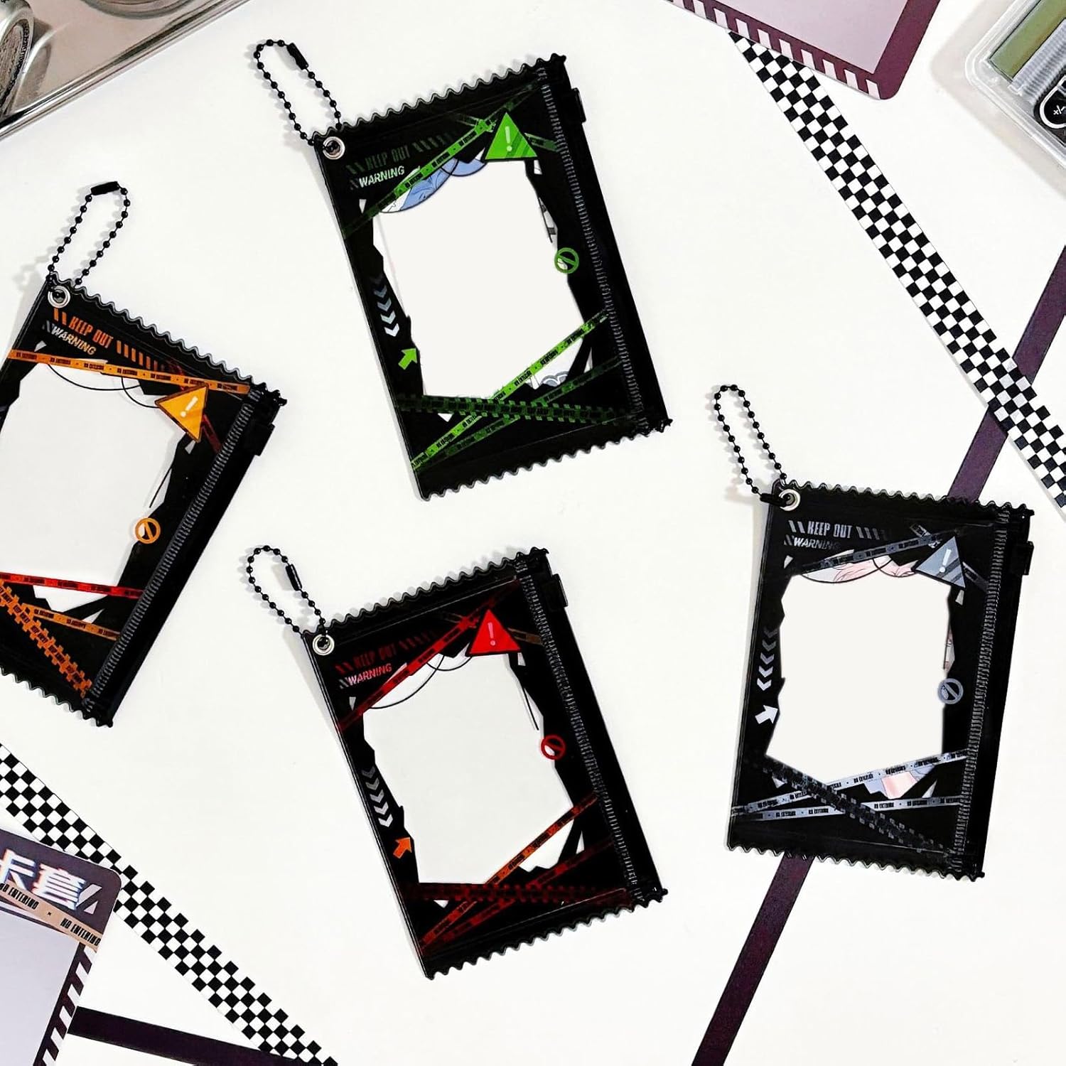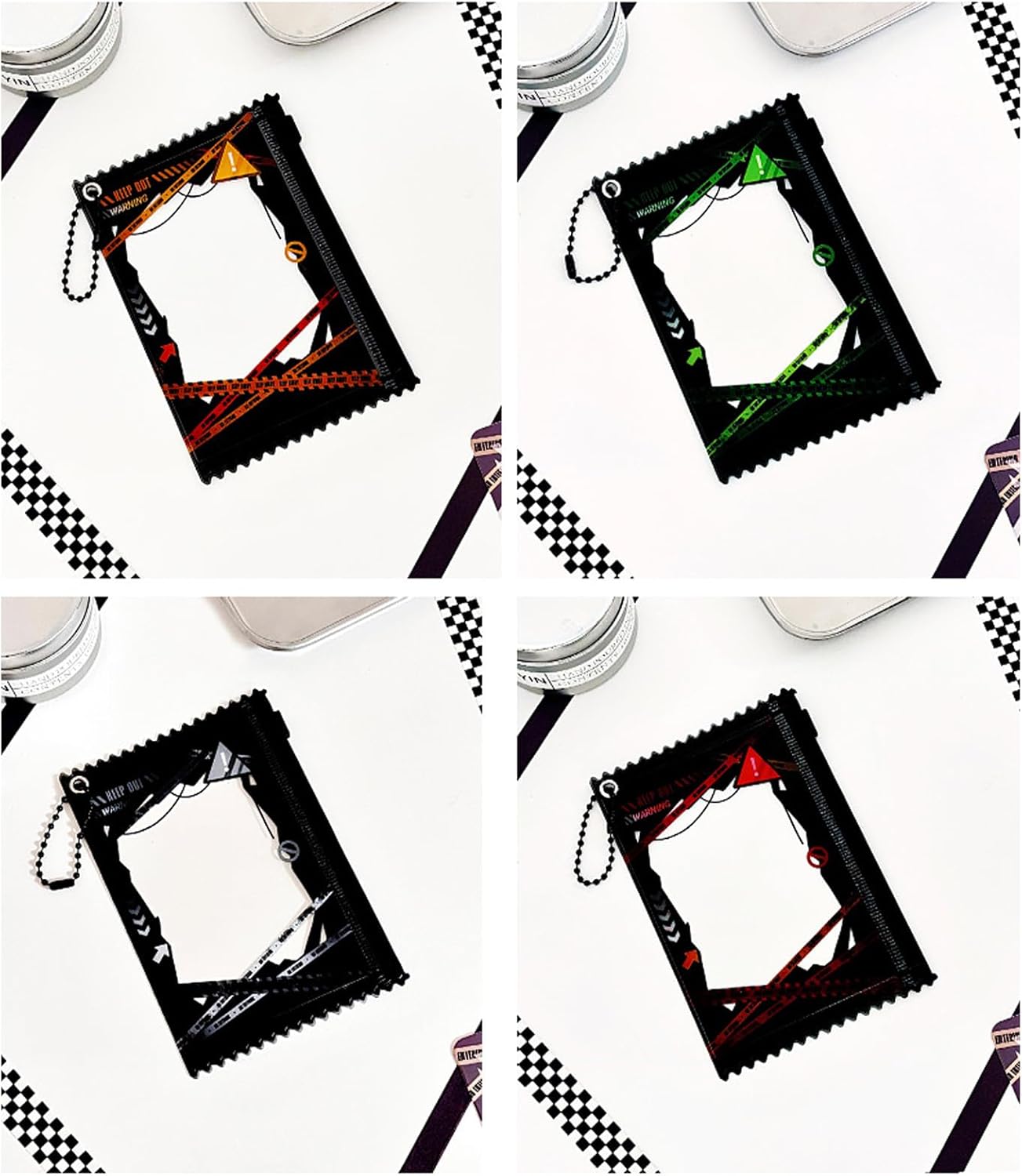 Adatto per l'uso in scuole, uffici, centri commerciali e altro ancora, offrendo un accesso rapido e facile a tutti i tipi di carte ogni volta che ne hai bisogno Proteggi le tue carte con stili utilizzando il nostro porta carte da 7,6 cm, design unici della linea di cautela, combinando moda e funzionalità Ideale per studenti, professionisti e chiunque abbia bisogno di portare carte Questo porta carte non solo protegge le tue carte, ma aggiunge anche un tocco di personalità alla tua collezione di accessori quotidiani Realizzato in pratico PVC, questo porta carte è leggero e portatile da usare