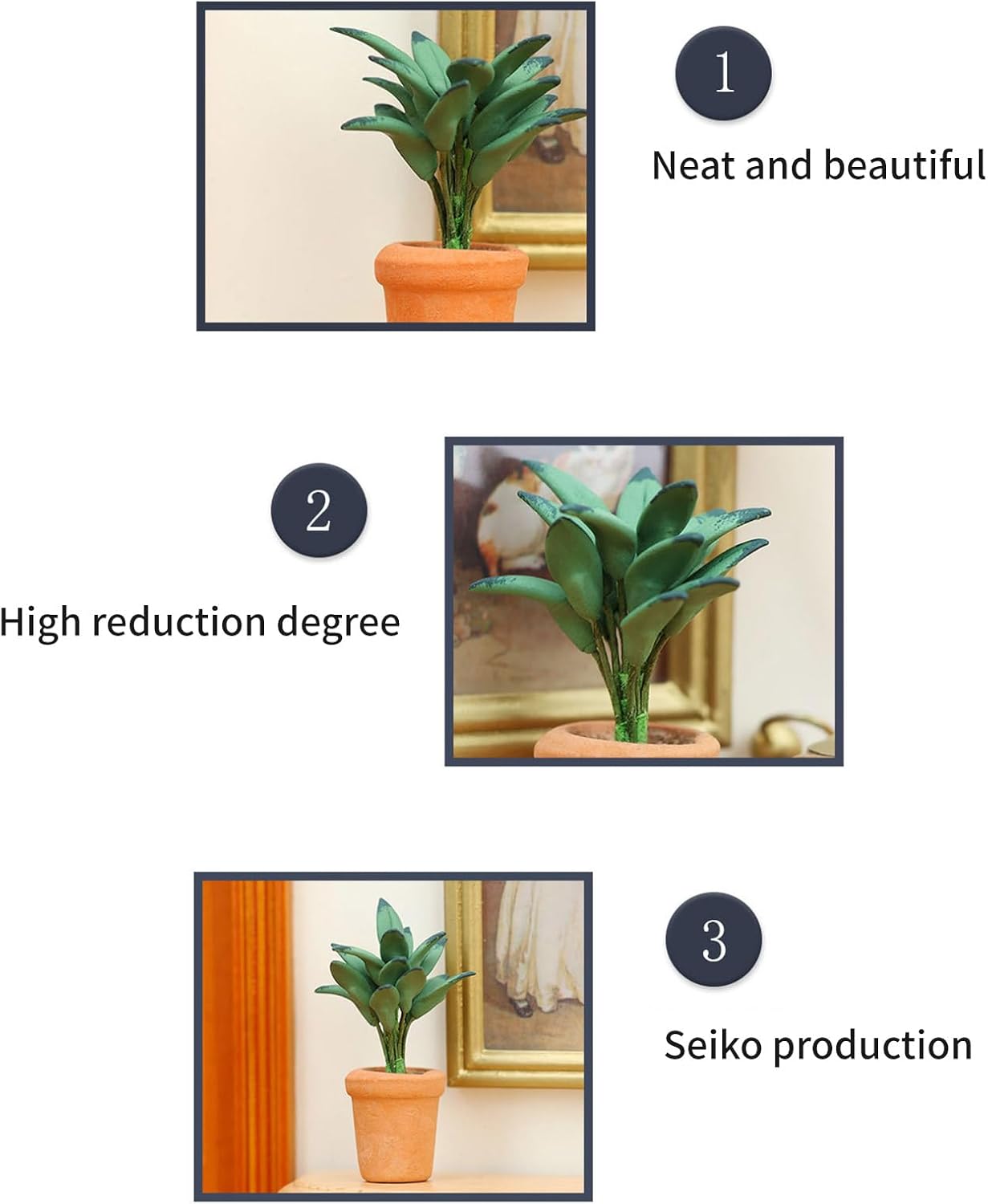 Come regali o personalizzare il tesoro, queste decorazioni per tavolo da pranzo in resina non solo completano le case delle bambole, ma servono anche come accessori da scrivania pittoreschi, aggiungendo un tocco sereno ai tuoi spazi di lavoro Che si tratti di un tavolo da pranzo in miniatura o migliora l'area di gioco dei bambini, queste piccole piante verdi fungono da decorazioni Realizzati in resina, questi modelli di piante vantano colori vivaci e trame dettagliate, offrendo un'aggiunta robusta e di manutenzione alla tua collezione di piante di bonsai per case delle bambole Per gli appassionati di case delle bambole, collezionisti di miniature e decoratori creativi, queste piccole piante verdi si rivolgono a coloro che apprezzano l'arte nella decorazione della casa su piccola scala Migliora il fascino delle case delle bambole con la piccola pianta verde delle case delle bambole, un set di piccoli fiori in vaso dal design intricato che portano verde a qualsiasi ambiente in miniatura