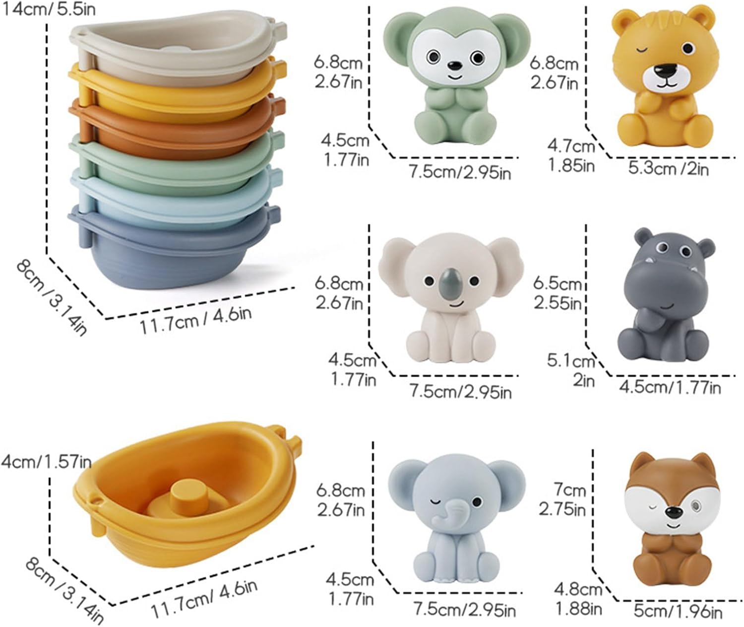 Realizzato con materiali, questi giocattoli sono dotati di dimensioni portatili per i bambini da afferrare, migliorando le loro tattili pur essendo delicati sulla pelle Con amici animali colorati, questi giocattoli da bagno non solo intrattengono ma aiutano anche a migliorare la coordinazione occhio-mano e il riconoscimento del colore, l'immaginazione e la creatività del tuo bambino Per l'uso nella vasca da bagno, in piscina o in qualsiasi area acquatica, questi vivaci giocattoli a forma di animale trasformano il momento del bagno in coinvolgente ed educativo sia per il bambino che per i genitori Il nostro giocattolo da bagno per bambini è progettato con struttura sigillata che garantisce un uso sicuro, rendendolo sicuro per i tuoi bambini durante il bagno Perfettamente adatto per bambini dai 6 ai 12 mesi, questo giocattolo da bagno per sviluppare le capacità motorie, rendendo lo sviluppo della prima infanzia