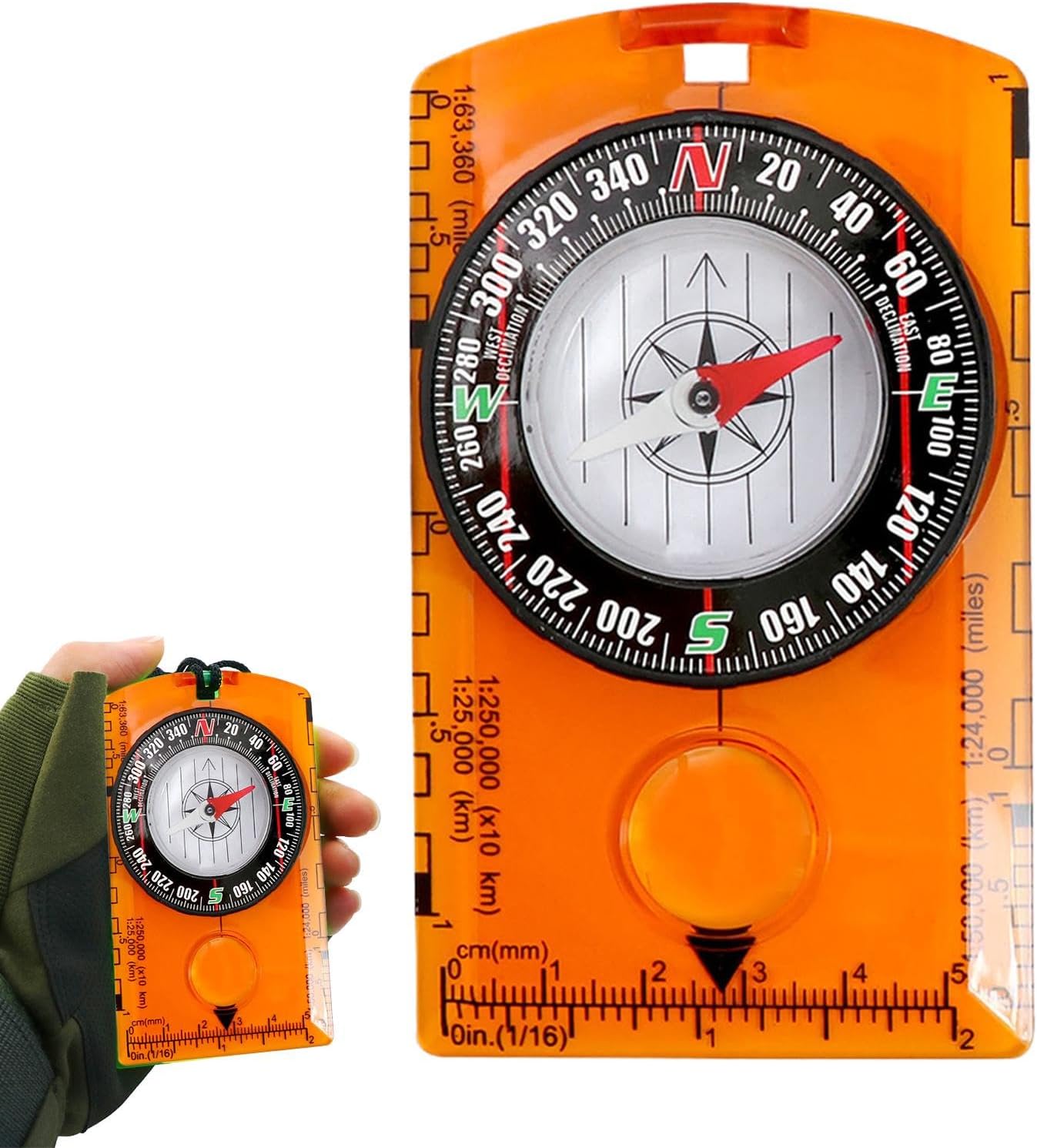 Precision for Reliable Navigation: designed for adventurers and professionals needing accurate readings up to 0.5°, featuring a liquid-filled for stability, ensuring precise directional guidance in hiking, survival Sturdy and Rugged Construction: built with -resistant acrylic and -resistant metal, this compass withstands harsh conditions, extreme temperatures, and rough handling, making it ideal for mountaineering, use, and wilderness Multifunctional Design for Versatile Use: features a built-in clinometer for measuring angles, a sighting mirror for precise navigation, and a global needle for accurate readings in any hemisphere, enhancing functionality for outdoor User-Friendly with Clear Markings: designed with an easy-to-read , luminous markings for low-light visibility, and a stable baseplate with multiple measurement scales, making it accessible for both beginners and experts in orienteering and navigation Compact, Lightweight, and Portable: small enough to fit in your pocket or attach to gear, this lightweight compass is perfect for carrying on long hikes, backpacking trips, or expeditions, ensuring you always have a reliable navigation tool on hand