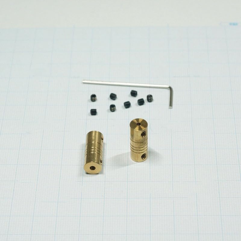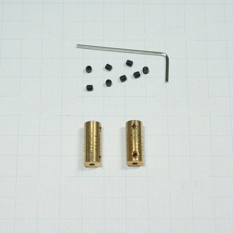 The product includes 2 brass couplings, 8 fastening screws, and 1 wrench High-precision machining can control the installation straightness of the motor shaft and the propeller shaft, reducing vibration and noise ↓ Refined coupling↓ 2.0-2.5: outer diameter 8mm, length 20mm, inner hole diameter Ф2.0-Ф2.5mm; M3 concave end fastening screw, m1.5 wrench; 2.3-2.5: outer diameter 8mm, length 20mm, inner hole diameter Ф2.3-Ф2.5mm; M3 concave end fastening screw, m1.5 wrench; 1.0-1.5: outer diameter 5mm, length 12mm, inner hole diameter Ф1.0-Ф1.5mm; M2 concave end fastening screw, m0.9 wrench; 2.3-3.0: outer diameter 9mm, length 20mm, inner hole diameter Ф2.3-Ф3.0mm; M3 concave end fastening screw, m1.5 wrench; 1.5-1.5: outer diameter 6mm, length 16mm, inner hole diameter Ф1.5-Ф1.5mm; M2.5 concave end fastening screw, m1.27 wrench; 1.0-1.0: outer diameter 5mm, length 12mm, inner hole diameter Ф1.0-Ф1.0mm; M2 concave end fastening screw, m0.9 wrench; 3.17-2.5: outer diameter 9mm, length 20mm, inner hole diameter Ф3.17-Ф2.5mm; M3 concave end fastening screw, m1.5 wrench; 2.0-1.5: outer diameter 8mm, length 20mm, inner hole diameter Ф2.0-Ф1.5mm; M3 concave end fastening screw, m1.5 wrench; 1.5-1.0: outer diameter 6mm, length 16mm, inner hole diameter Ф1.5-Ф1.0mm; M2.5 concave end fastening screw, m1.27 wrench: 1.5-2.0: outer diameter 6mm, length 16mm, inner hole diameter Ф1.5-Ф2.0mm; M2.5 concave end fastening screw, m1.27 wrench; 3.17-3.0: outer diameter 9mm, length 20mm, inner hole diameter Ф3.17-Ф3.0mm; M3 concave end fastening screw, m1.5 wrench; 2.3-2.0: outer diameter 8mm, length 20mm, inner hole diameter Ф2.3-Ф2.0mm; M3 concave end fastening screw, m1.5 wrench;
