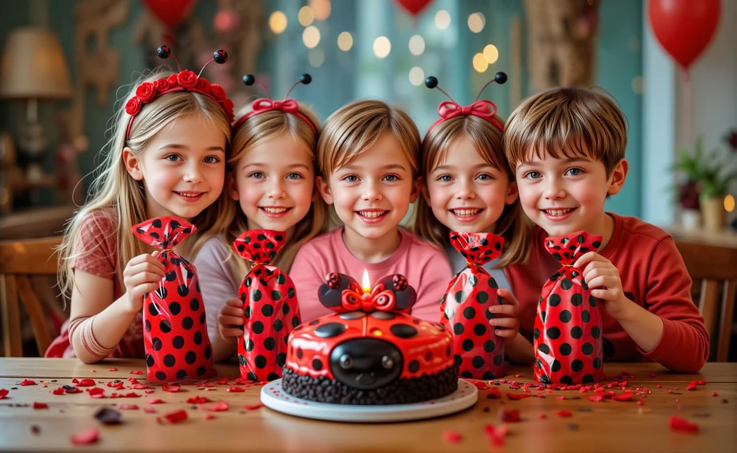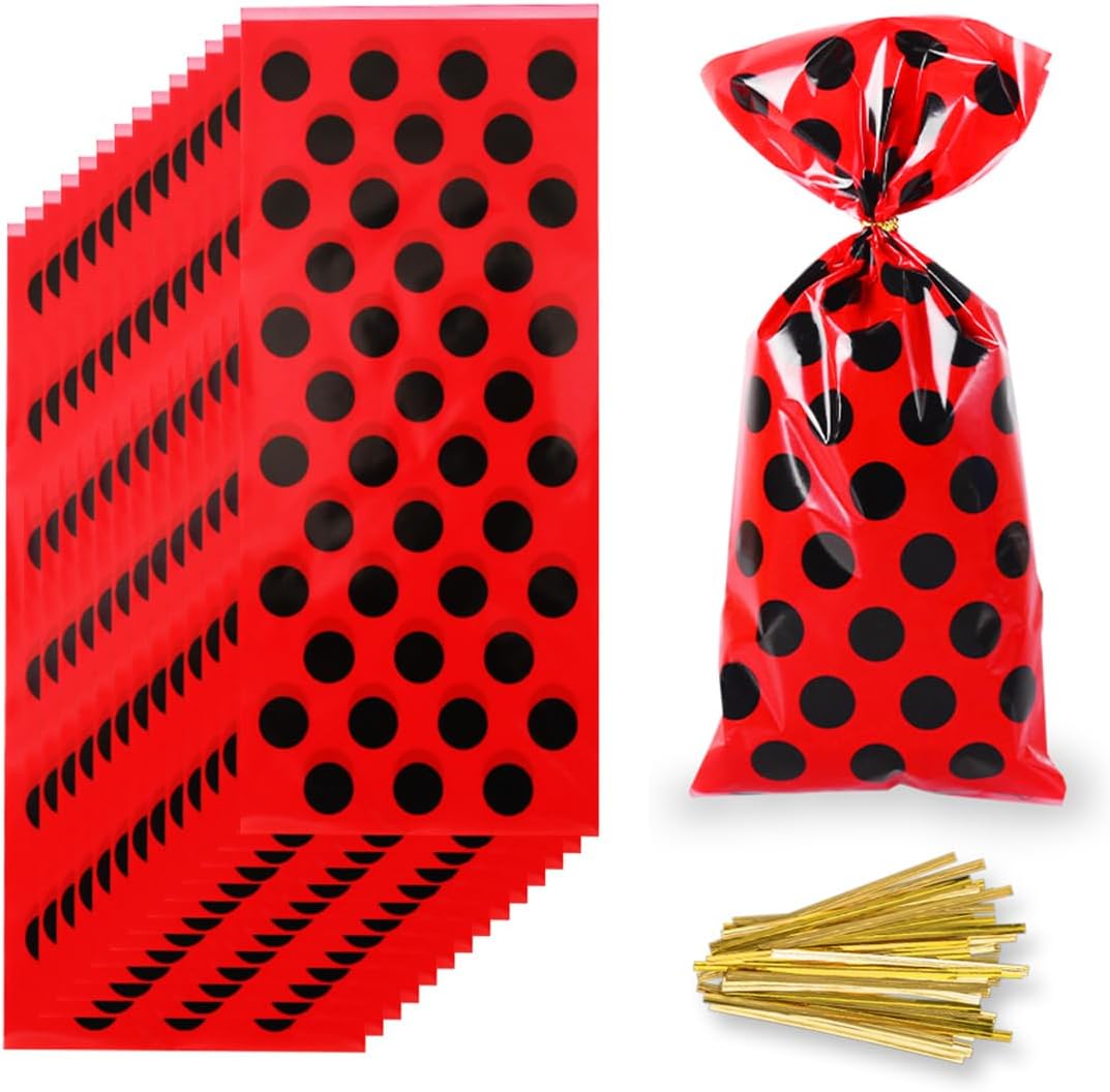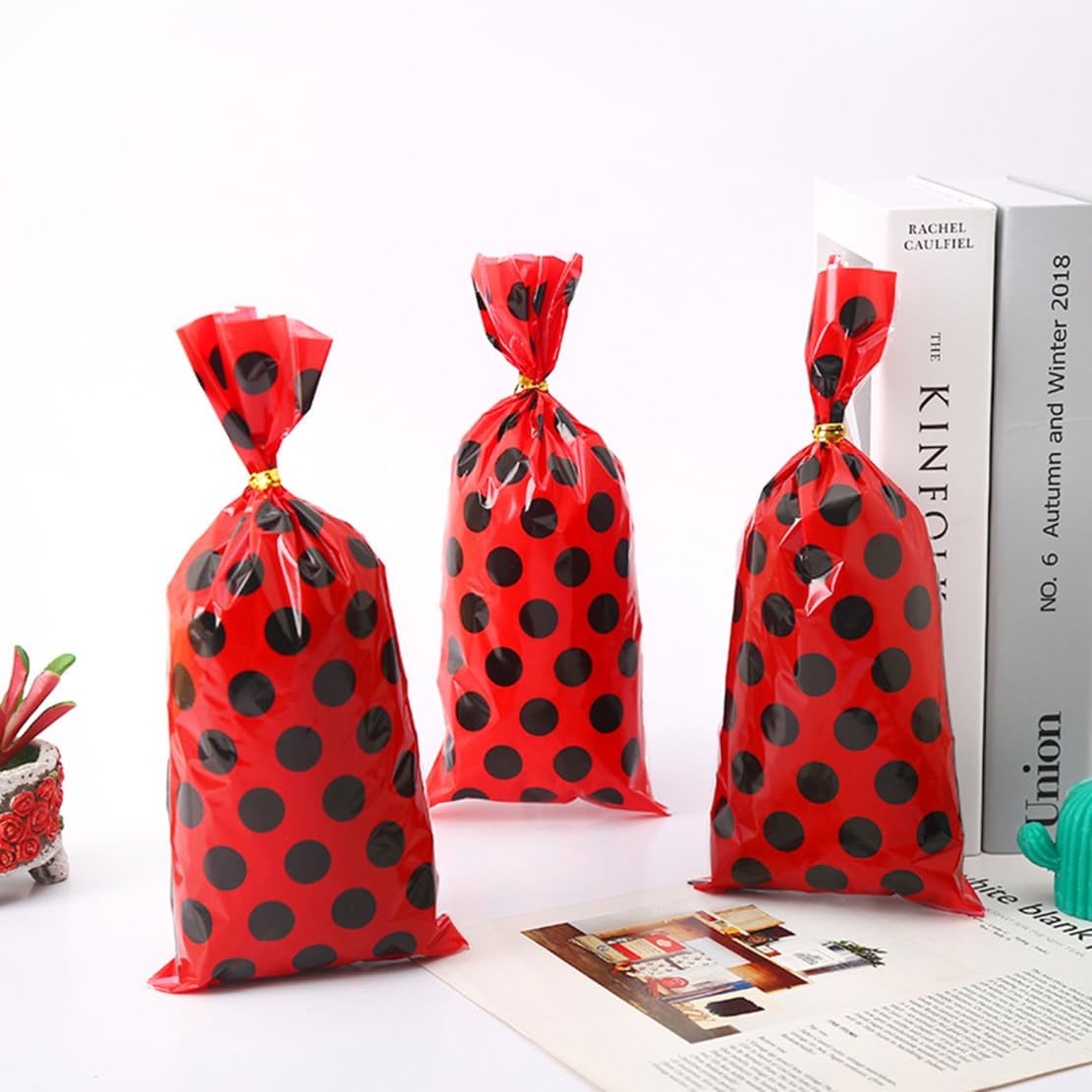 Set da 50 sacchetti Ladybug Ladybug - graziosi sacchetti regalo rossi con pois neri - ideali per feste per bambini, feste a tema o carnevale. Pratico e adatto ai bambini: realizzato in materiale resistente, riutilizzabile e perfetto per piccole sorprese. Ideale per ragazze e ragazzi – come regalo per feste, sacchetto regalo o decorazione – versatile. Con chiusura a orecchie di coniglio: basta chiudere e riporre in modo sicuro, ideale per dolci, giocattoli o piccoli regali. Design allegro - Ispirato all'aspetto della coccinella - assicura che gli occhi dei bambini si illuminino.