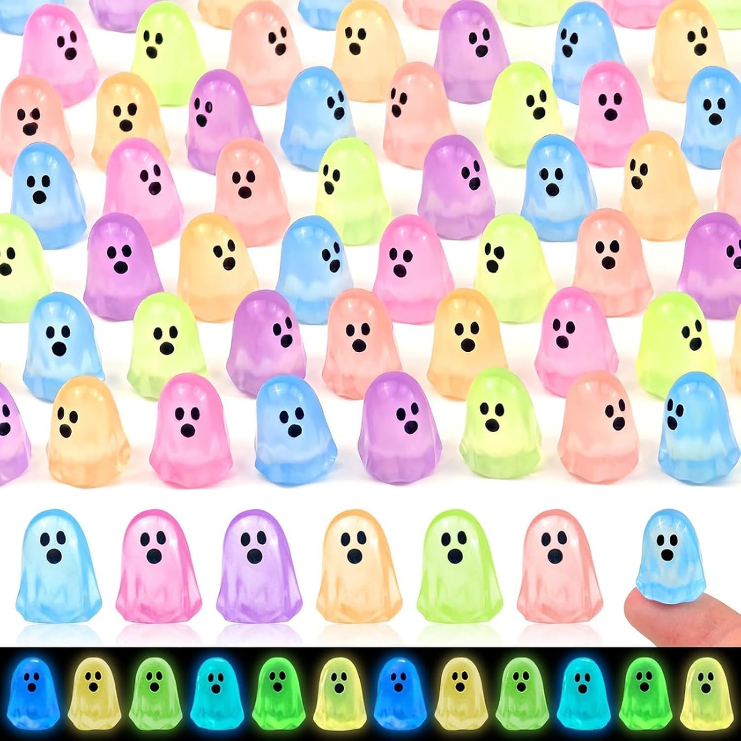 【Compatto】Statue in miniatura Le dimensioni ridotte consentono un posizionamento flessibile o un facile fissaggio ovunque tu voglia 【Versatili】Statuine in miniatura per bomboniere, decorazioni, lanterne di zucca, ciotole di caramelle e riempitivi per sacchetti regalo 【Statuine di spettri in miniatura con effetto luminoso】Le statuette di spettri in miniatura assorbono la luce durante il giorno e brillano di notte, creando un'atmosfera di Halloween spettrale ma divertente 【Resina】Decorazioni di Halloween realizzate in resina di qualità per un uso a lungo termine e un facile riutilizzo anno dopo anno 【Decorativo】Decorazioni di Halloween ideali per esposizioni da tavolo, decorazioni per torte, case delle bambole e paesaggi in miniatura