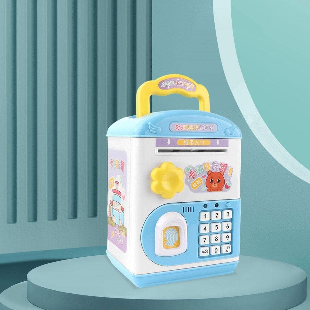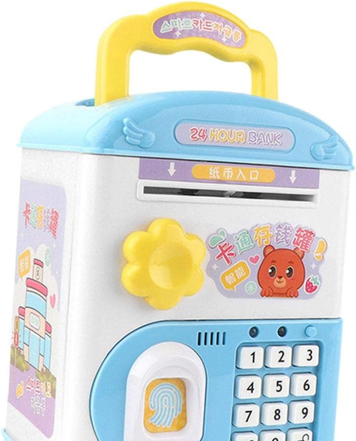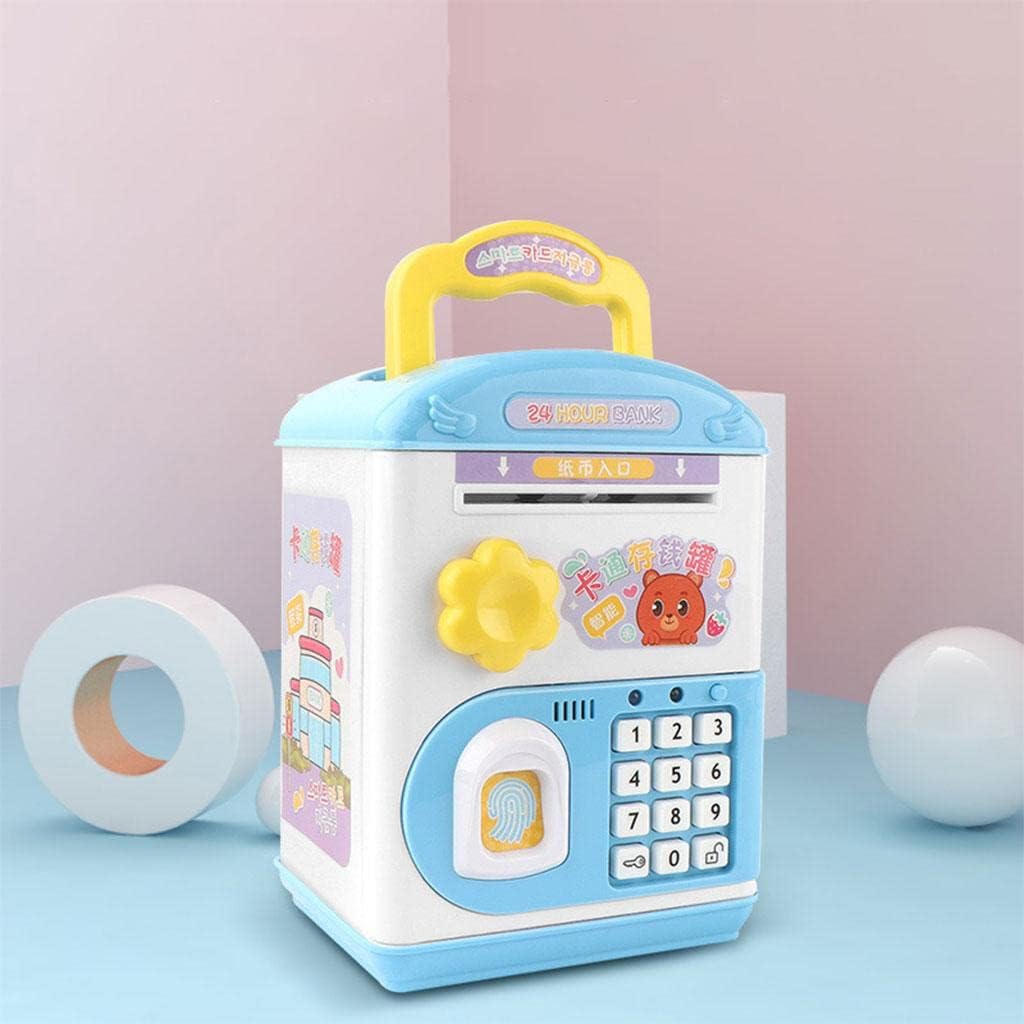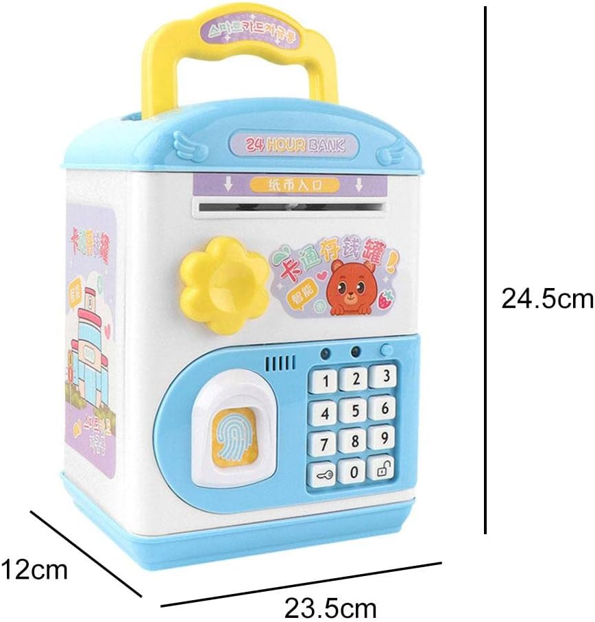 Alimentato da 3 batterie AA (non incluse). Ottimo regalo per i bambini per i loro compleanni. Questo salvadanaio elettrico è progettato con una per monete nella parte superiore e una scatola di risparmio ATM. Aiuta notevolmente a migliorare la consapevolezza finanziaria dei bambini e lascia che tuo figlio sviluppi la migliore abitudine di risparmiare denaro. : richiede un blocco di protezione con password a 4 cifre e premere l' per aprire (la password predefinita è 0000) e i bambini possono anche impostare la propria password. La cartamoneta automatica, è sufficiente inserire la carta moneta nella banconota e nuovo o vecchio verrà arrotolato nella banca dei soldi.