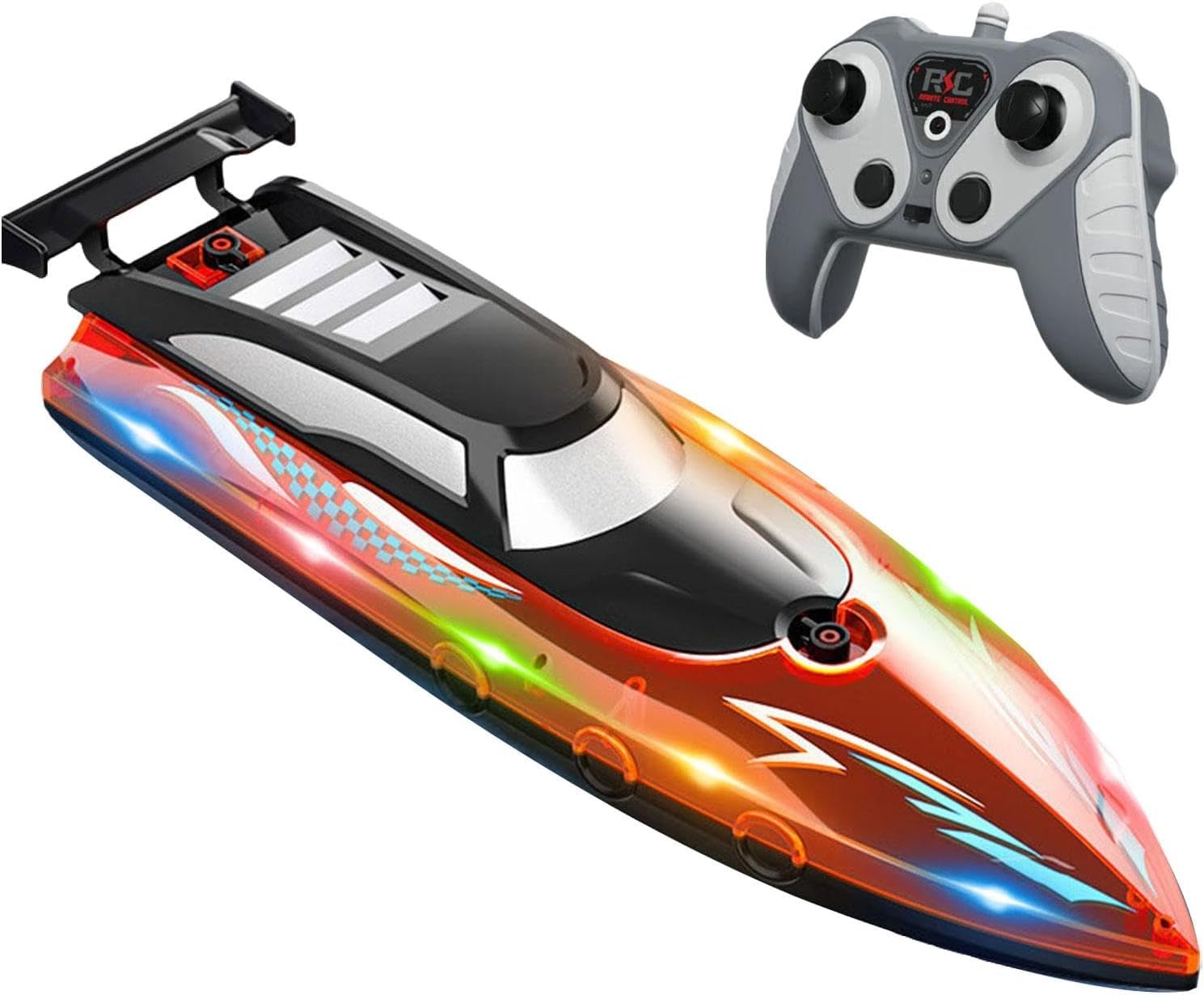 【Alte prestazioni】: barca RC, alta, anti-interferenza 2.4G; velocità 50 km/h; resistenza, circa 30 minuti; distanza del telecomando, circa 80 metri 【Potente a 】: barca telecomandata con potenti doppi motori, potenza elevata, stabilità, ti consente di provare l'emozione della navigazione ad alta velocità 【Navigazione notturna migliorata】: le luci di navigazione integrate nel motoscafo illuminano la tua navigazione in acqua, consentendoti di navigare facilmente di notte, aggiungendo funzionalità e visivo alle tue avventure in barca a vela 【Dimensioni del prodotto】: Barca telecomandata 32,5 cm x 9,5 cm x 8 cm / 12,8 pollici x 3,74 pollici x 3,15 pollici 【Struttura impermeabile sigillata】: modello giocattolo acquatico per bambini è realizzata in PP di qualità e ha una struttura impermeabile completamente sigillata per impedire l'ingresso di acqua e proteggere tutti i componenti interni; il design con blocco a torsione singola protegge efficacemente lo scafo dall'ingresso di acqua
