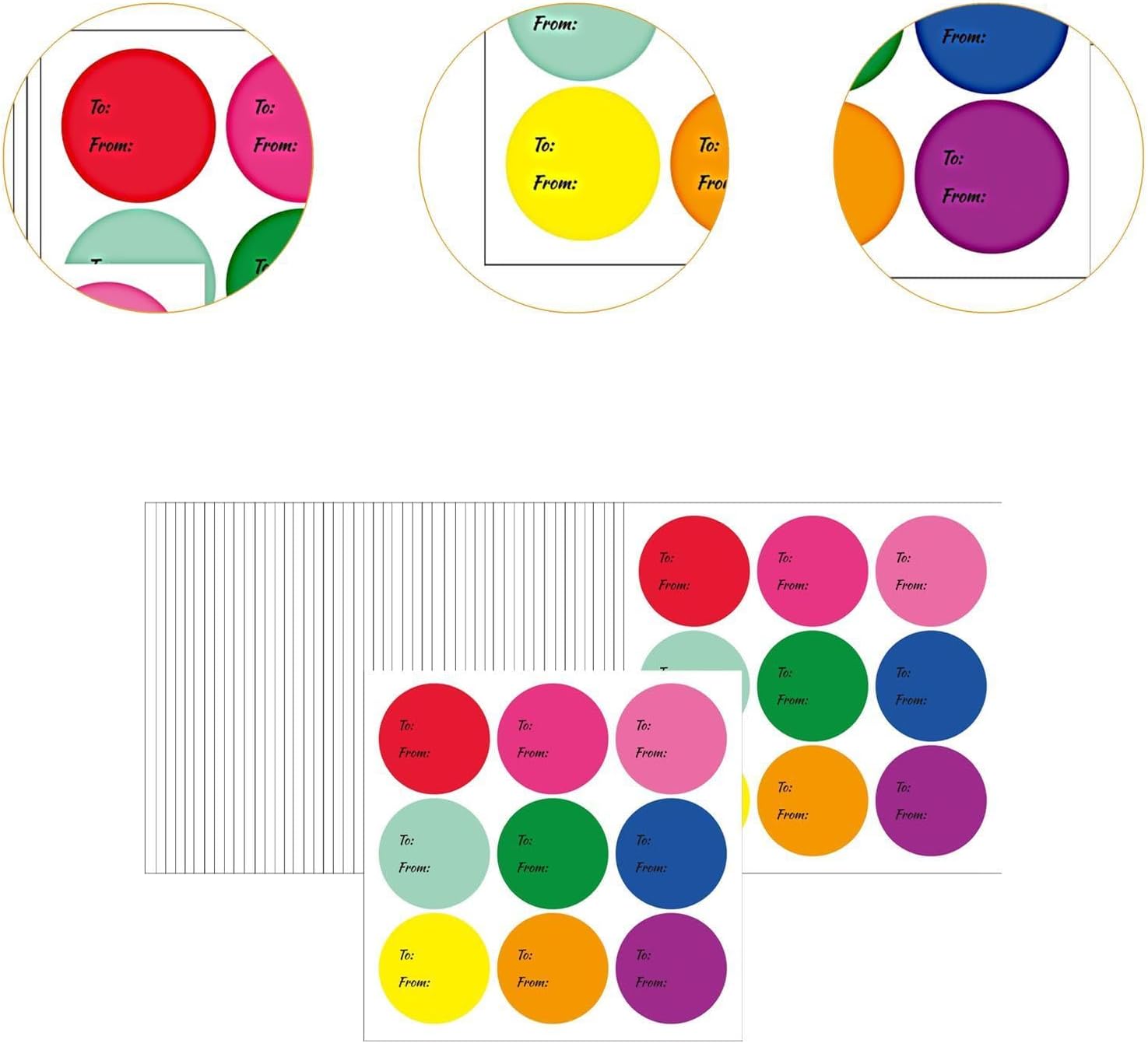 Design semplice: valorizza la confezione regalo con questi eleganti adesivi, caratterizzati dalla stampa del design A/Da che consente una facile scrittura con le penne. Facili da usare: questi adesivi sono facili da applicare su qualsiasi superficie, come regali, buste, imballaggi o barattoli Qualità premium: realizzati in PVC, questi adesivi circolari sono spessi, lisci e facili da scrivere Quantità sufficiente: la confezione include 50 fogli/300 etichette adesive rotonde per regali in 9 colori diversi. Il diametro di ogni singolo adesivo è di 6,35 cm/2,5 pollici. Ampia applicazione: le etichette regalo eleganti e versatili sono perfette per compleanni, matrimoni, addio al nubilato, shower, Pasqua, Ringraziamento o feste di Natale, feste