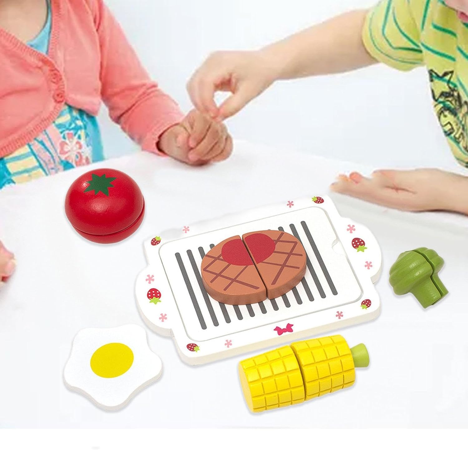【Giocattoli didattici】: accessori da cucina per giochi di finzione promuovono la cognizione alimentare del tuo bambino, allenano la coordinazione occhio-mano e la flessibilità dei bambini attraverso il loro stesso funzionamento, miorano la capacità cognitiva del colore e della forma del bambino 【Giocattoli interattivi】: i giocattoli di cibo finto sono adatti ai bambini per giocare con amici o famiglie, migliorando le loro abilità sociali, favorendo l'interazione e il legame e migliorando il divertimento 【Set di giocattoli da cucina per tagliare il cibo】: i giocattoli da cucina per tagliare il cibo, hanno dettagli raffinati e colori vivaci, aumentano il divertimento e l'interattività del gioco e consentono ai tuoi bambini di godersi un'esperienza di taglio felice 【Materiale di alta qualità】: il set da gioco per la cena con bistecca finta in cucina è realizzato in legno, ha una superficie liscia e un bordo senza sbavature, è affidabile da giocare e garantisce un lungo periodo di utilizzo 【Ottimi regali】: il set di cibo da gioco per bambini è un bel regalo per bambini e bambine dai 3 anni in su per compleanni, feste, festival, ecc., offrendo un'esperienza di gioco divertente per i bambini