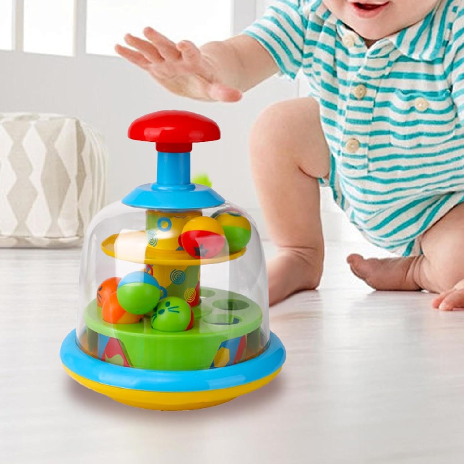 【Materiale】: Questo giocattolo è realizzato con cura in PP di qualità con bordi lisci e arrotondati per evitare urti o graffi. È costruito per resistere a un gioco intenso. 【Sviluppo precoce】: Questo è strumento per l'apprendimento precoce. L'azione di pressione aiuta a rafforzare le capacità motorie fini e la coordinazione occhio-mano. I colori e il movimento dinamico dello scoppiettio stimolano lo sviluppo visivo e sensoriale, rendendolo un giocattolo essenziale. 【Facile da usare】: Grazie alle sue dimensioni compatte, questo giocattolo leggero è facile da portare ovunque, dai ai macchina 【Regalo ideale】: questo coinvolgente ed educativo giocattolo Ball Popper è un successo per i bambini di età compresa tra 0 e 2 anni, offrendo sia divertimento che preziosi benefici per lo sviluppo 【Coinvolgente causa effetto】: premono il pulsante grande per vedere le palline colorate scoppiare e saltare. Questa azione semplice e gratificante è ideale per insegnare il di causa ed effetto.