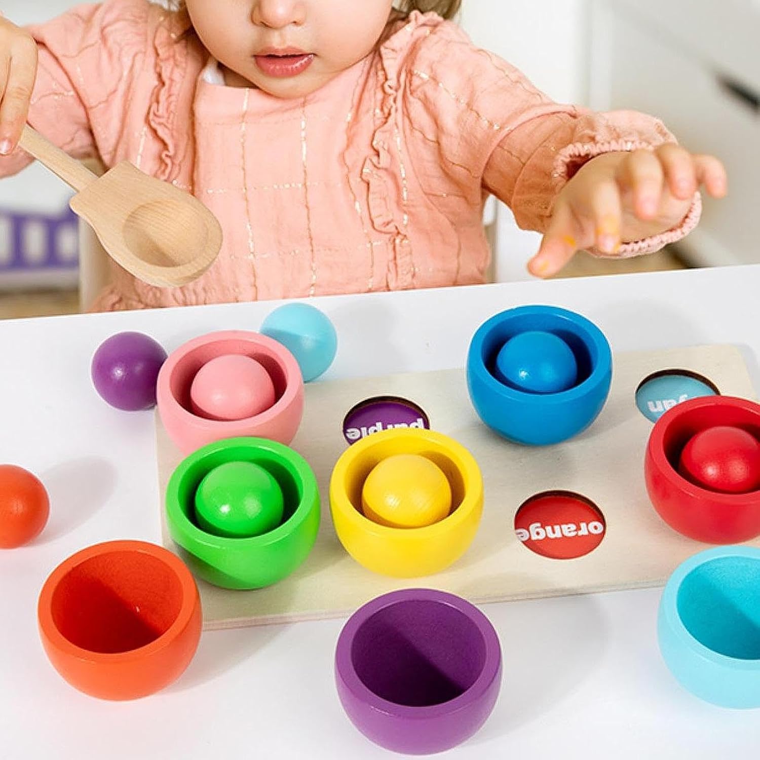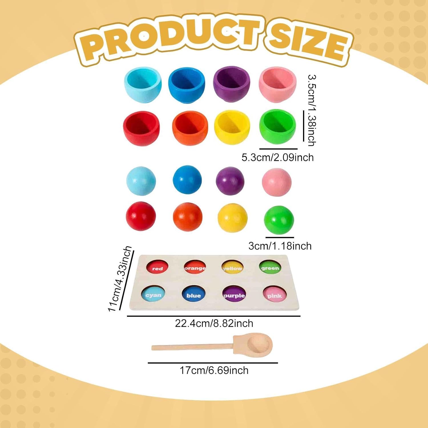 【Sviluppo cognitivo】: questo gioco di abbinamento in legno promuove la capacità di osservare, estrarre attributi comuni e impegnarsi in attività pratiche che favoriscono lo sviluppo cognitivo 【Riconoscimento di colori e forme】: questo set di giocattoli educativi è progettato per aiutare i bambini a riconoscere e categorizzare i colori, migliorando il loro allenamento sensoriale visivo abbinando palline colorate alle tazze corrispondenti 【Materiali e dimensioni di alta qualità】: Realizzato in legno di qualità, questo set di palline arcobaleno in bicchieri è comodo da usare per i bambini. Dimensioni del cucchiaio: 17 cm, base: 22,4 cm x 11 cm, pallina: 3 cm e bicchiere: 5,3 cm x 3,5 cm. 【Miglioramento delle competenze linguistiche】: la base di classificazione dei colori presenta lettere inglesi corrispondenti per ogni colore, offrendo ai bambini l'opportunità di associare i colori ai loro nomi inglesi 【Allenamento delle capacità motorie fini】: l'utilizzo del cucchiaio incluso per trasferire le palline nei bicchieri aiuta a sviluppare la coordinazione occhio-mano e le capacità motorie fini. È anche un ottimo giocattolo interattivo per genitori e figli.