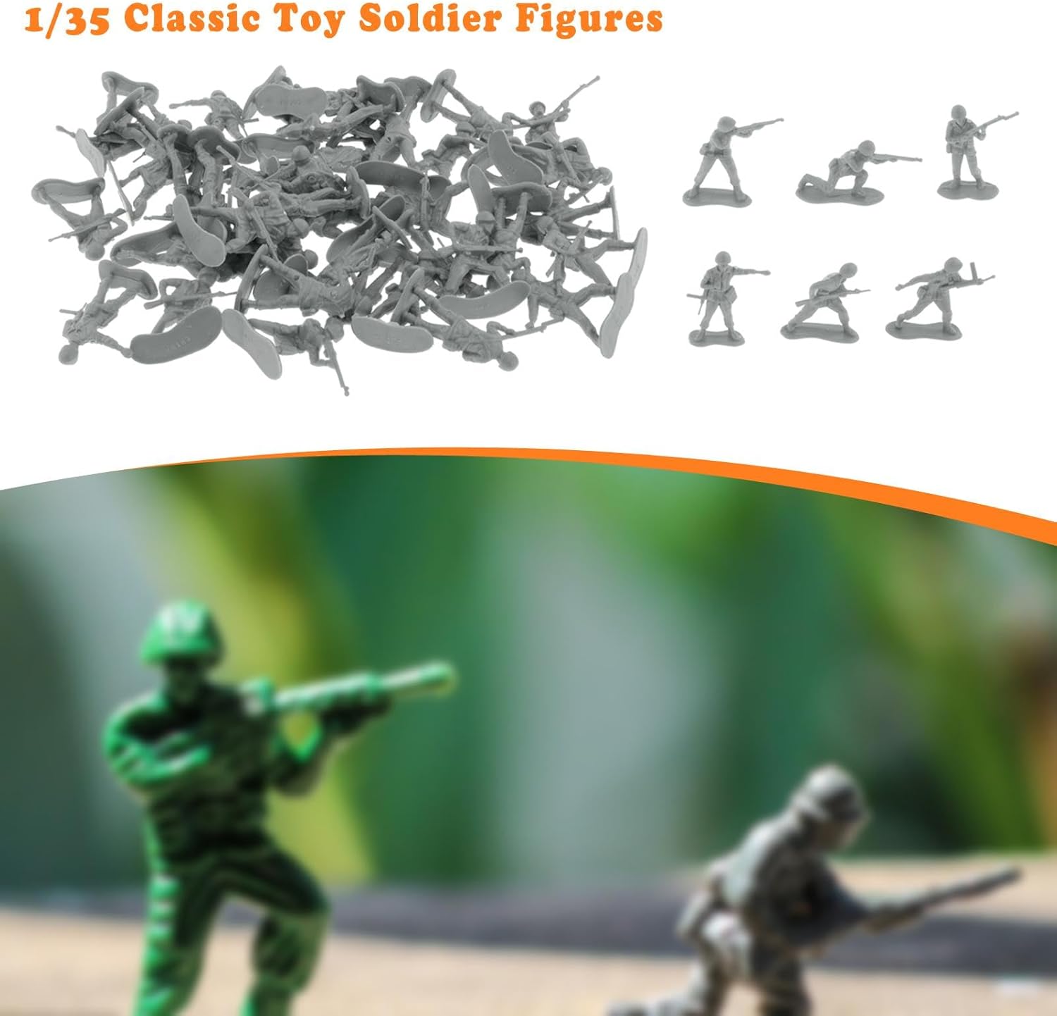 【Set di gioco coinvolgente】: questo kit di modelli di soldati in scala 1:35 è progettato con una varietà di pose di soldati, ottimo per creare scenari coinvolgenti 【Istruttivo e divertente】: incoraggia la creatività e il del tuo bambino consentendogli di disporre le figure dei mini soldatini in varie formazioni 【Materiale premium】: realizzate in PP di qualità, queste statuette in miniatura sono progettate per resistere a ore di gioco mantenendo la loro forma e i loro dettagli 【Set completo】: il pacchetto include 50 modelli di soldati in scala 1:35, fornendo ampi pezzi per creare diverse scene di battaglia o combinarli con altri set per un divertimento ancora maggiore 【Dimensioni adatte alle manine】: Ogni mini soldato è alto circa 4 cm-5 cm/1,57 pollici-1,97 pollici, il che lo rende facile da maneggiare e manovrare anche per le manine più piccole durante il gioco.