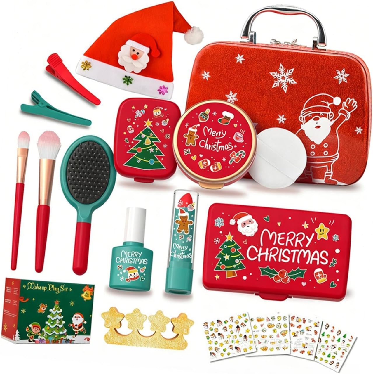 【Design realistico】Progettato con dettagli vividi e realistici, il giocattolo per il trucco sembra un vero trucco, stimolando la creatività e l'immaginazione del tuo bambino 【Incoraggia la creatività】: giocare con kit cosmetici finti aiuta a sviluppare le capacità motorie fini, la coordinazione occhio-mano e le abilità sociali del tuo bambino attraverso giochi di ruolo e giochi interattivi 【Custodia portatile】: questo kit per il trucco finto è facile da riporre o da portare con sé per appuntamenti di gioco, viaggi o riunioni di famiglia 【Materiale】: Realizzato in PP di qualità, ogni pezzo è leggero e costruito per resistere al gioco entusiasta, garantendo durata per i bambini piccoli 【Set di trucco natalizio festivo】: questo kit di trucco finto è progettato appositamente per i bambini, con un allegro tema natalizio e una confezione, ottimo come regalo per le vacanze e per il gioco festivo