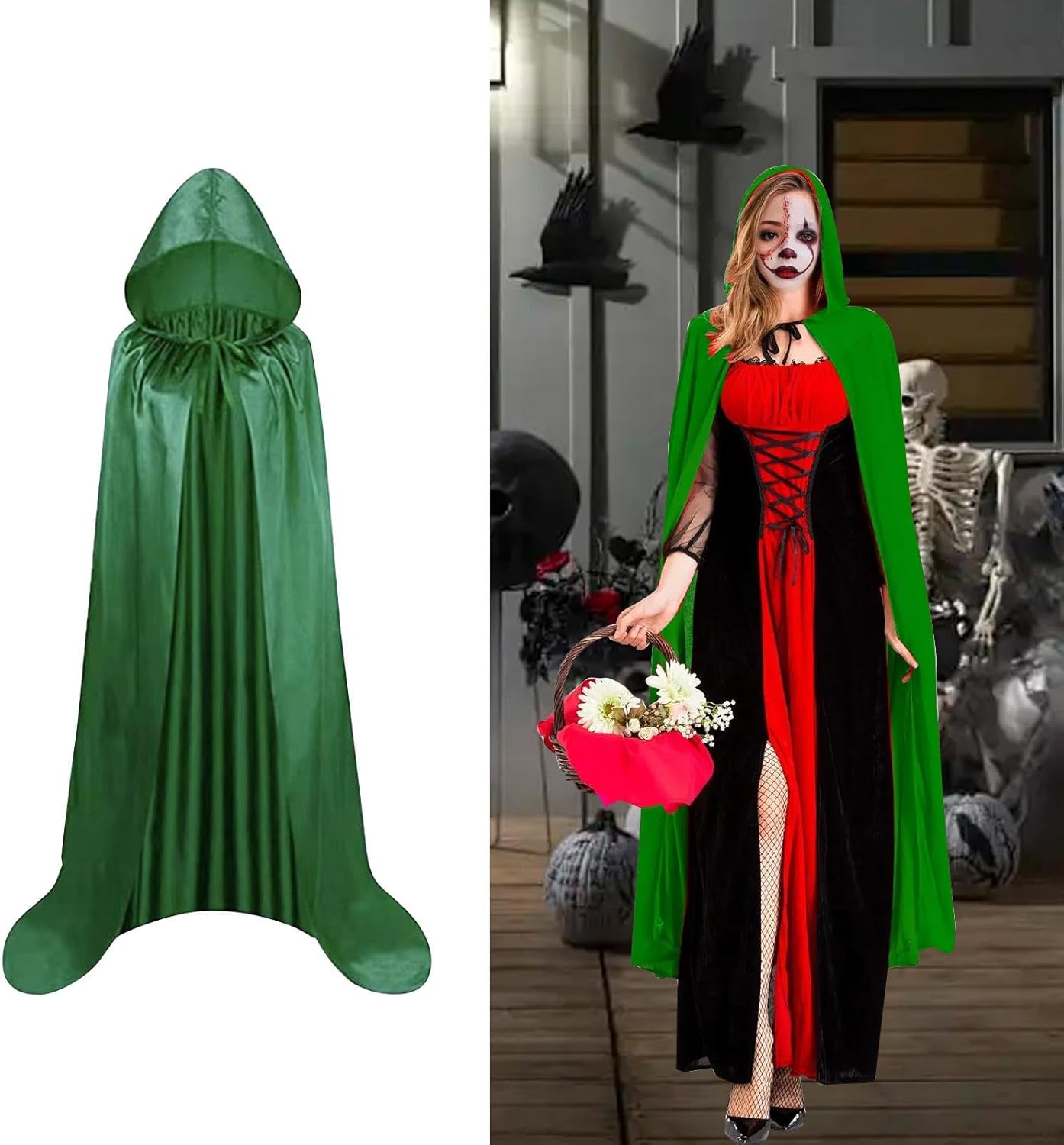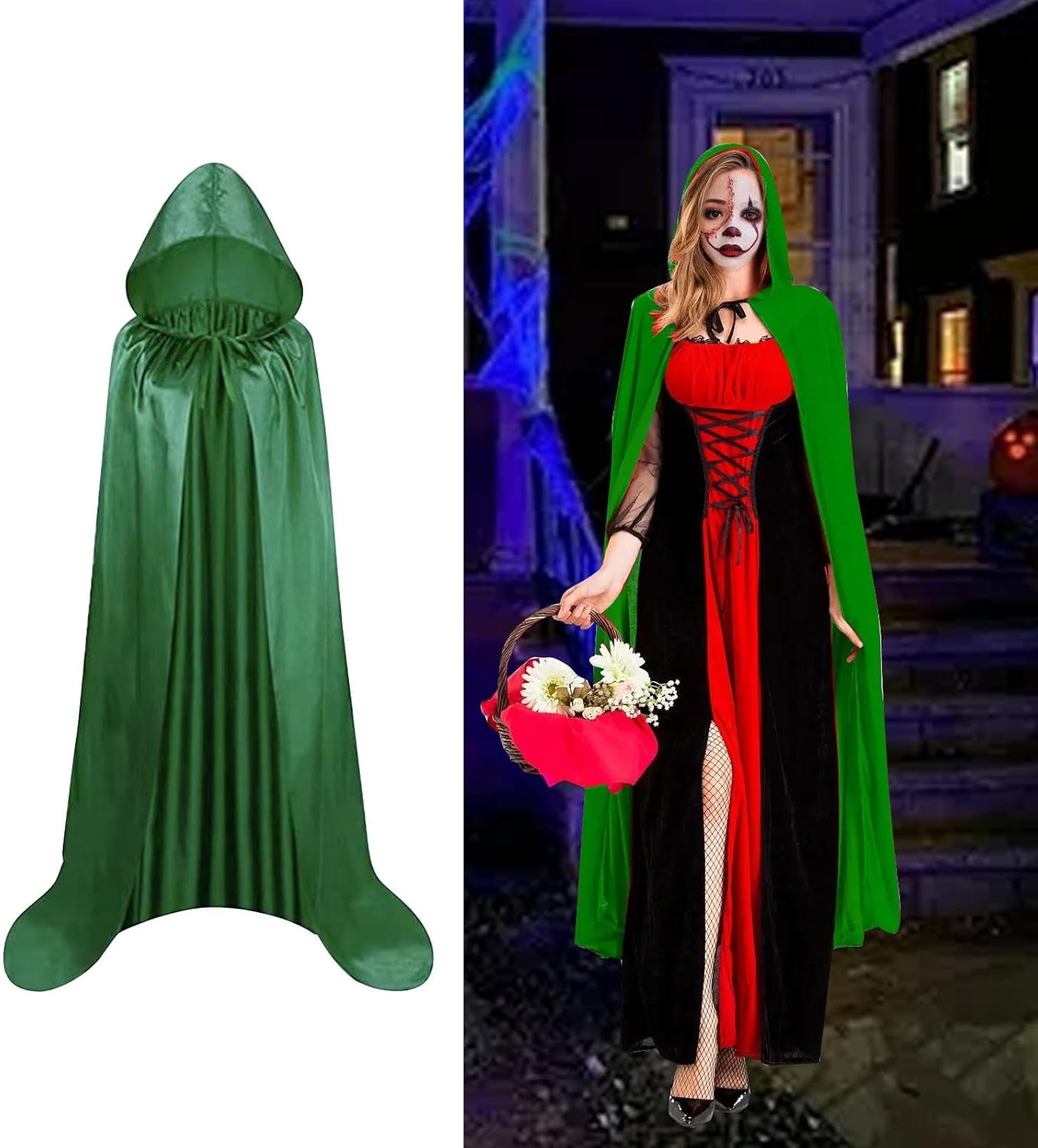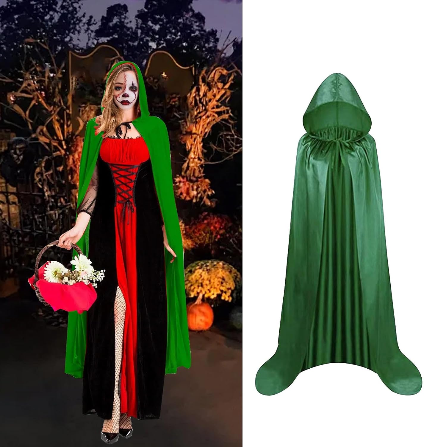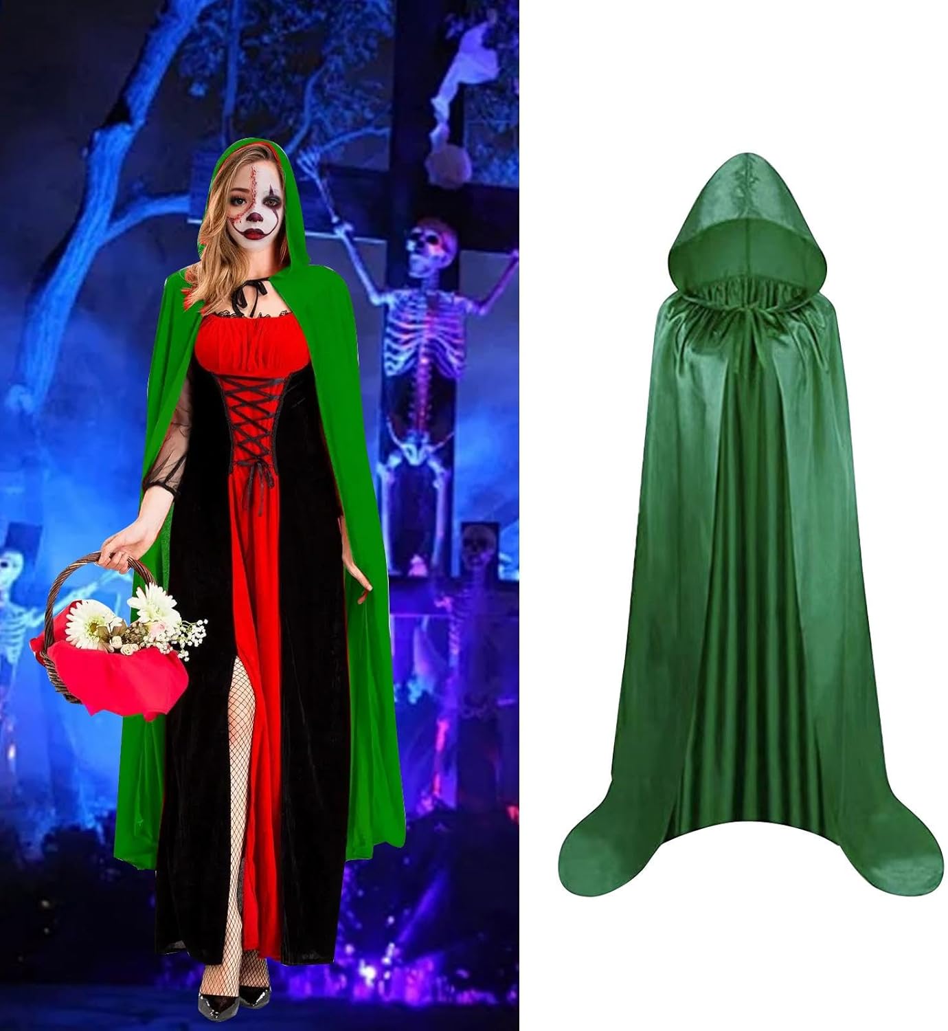 【Materiale】: il mantello di Halloween è realizzato in tessuto, morbido e liscio, che offre un'esperienza di utilizzo confortevole 【Atmosfera di Halloween creativa】: il mantello con cappuccio è progettato per creare un'atmosfera misteriosa e drammatica, adatta per Halloween e varie feste a tema 【Occasioni applicabili】: il mantello con cappuccio è adatto per Halloween, feste, spettacoli e altre occasioni, aumentando la diversità e il divertimento del vestirsi 【Abbinabilità】: il costume da cosplay di Halloween può essere abbinato a una varietà di accessori o indumenti per completare facilmente il look di Halloween e migliorare l'effetto generale del vestiario. Può essere indossato e tolto rapidamente e facilmente 【Leggero e traspirante】: il mantello con cappuccio è progettato per essere leggero e traspirante, adatto per essere indossato in diverse condizioni meteorologiche senza sentirsi soffocanti
