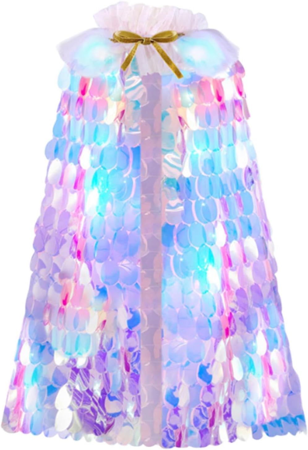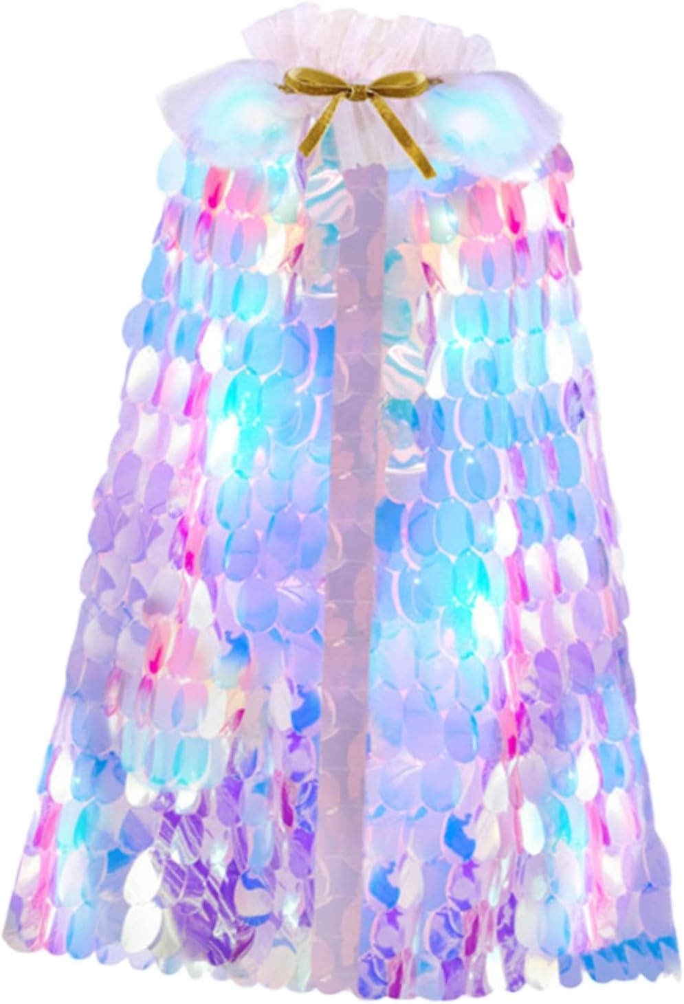 【Costume con luci a LED】: il mantello da principessa presenta un motivo a scaglie scintillanti e luci a LED scintillanti, creando un bagliore accattivante per feste ed eventi 【Adatto alla maggior parte dei bambini】: il mantello in tulle presenta un design regolabile con una lunghezza di 70 cm/27,56 pollici, rendendolo adatto a bambini dai 3 ai 10 anni e versatile 【Materiale morbido e confortevole】: il costume da cosplay è realizzato in rete morbida, confortevole e leggera, che consente un comodo utilizzo per tutto il giorno 【Ideale per le vacanze】: il mantello da principessa per ragazze è perfetto per Halloween, Natale, feste di compleanno o come principessa sirena, aggiungendo un tocco di fantasia a qualsiasi occasione 【Facilmente abbinabile】: accessori per costumi si sovrappongono facilmente a vestiti o abiti per una trasformazione immediata