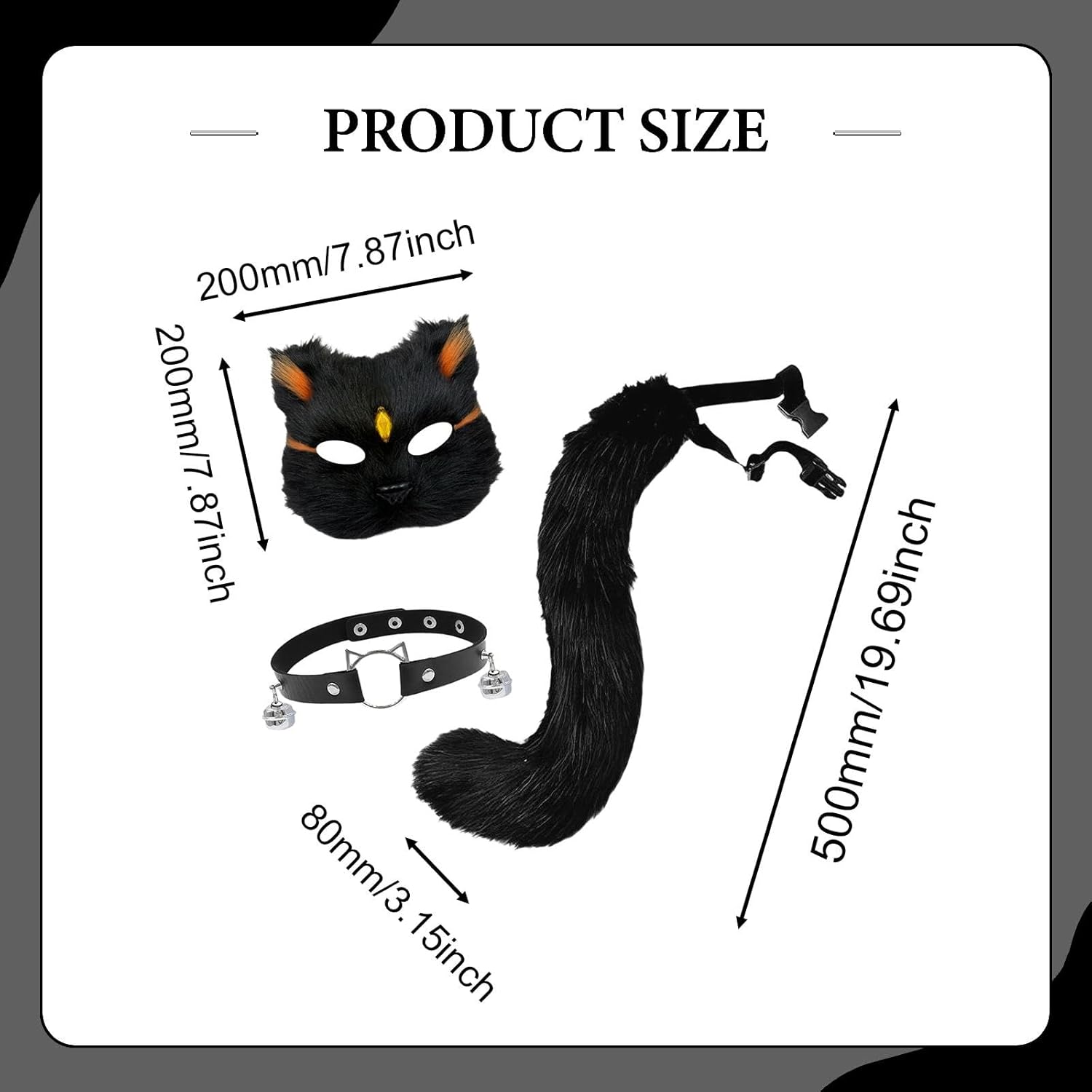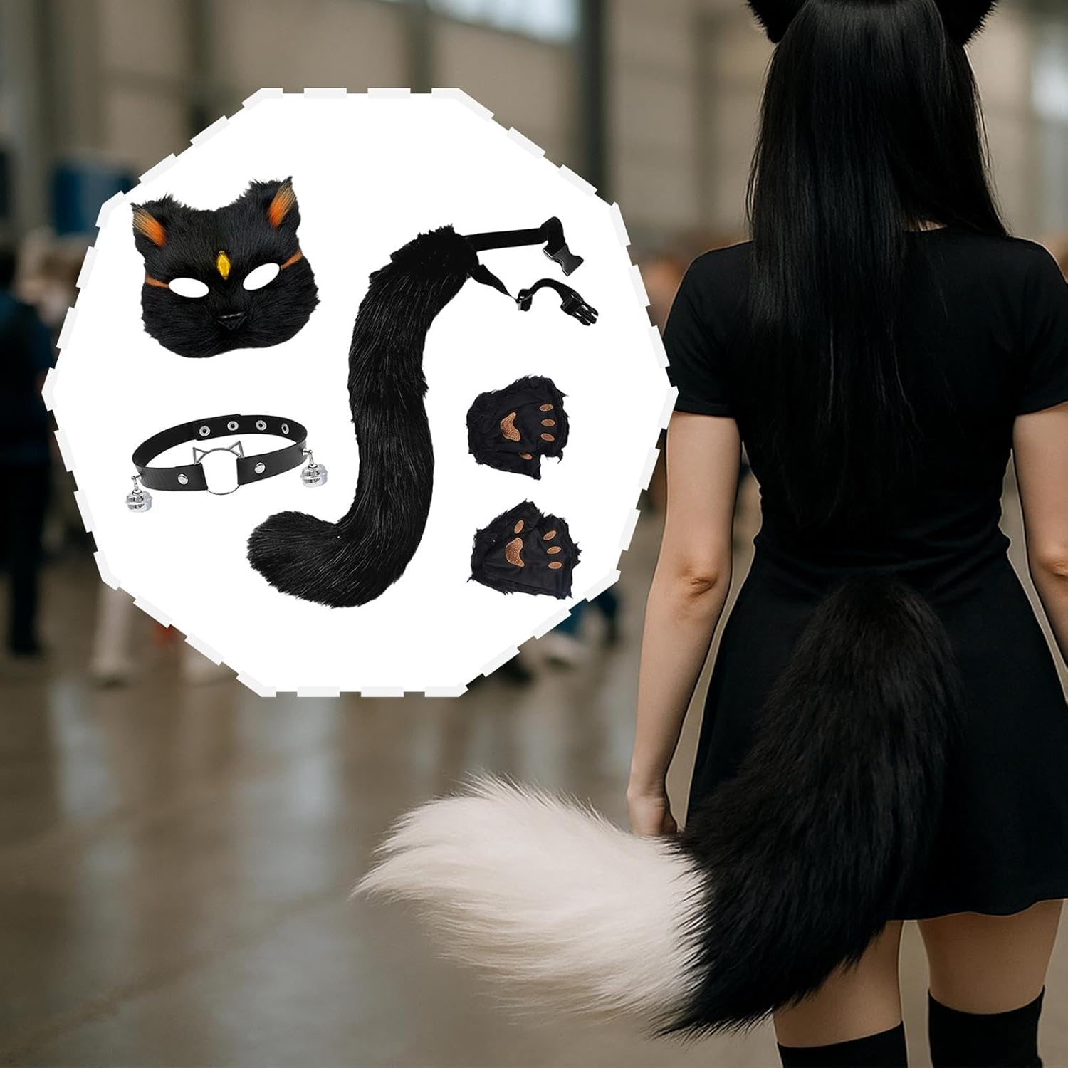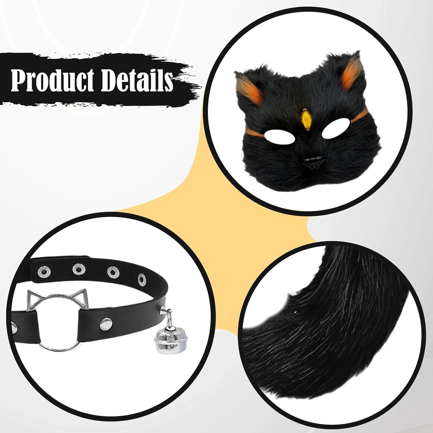 【Facile da indossare】 Questi accessori per cosplay di animali sono facili da indossare e da togliere, permettendoti di vestirti rapidamente. La coda ha una cintura regolabile, adatta a persone diverse 【Materiale di alta qualità】Il set di maschera e coda da è realizzato in peluche di alta qualità, affidabile, leggero e comodo al tatto 【Ottimo regalo】Questo grazioso e accattivante set di maschera e coda per gatti è una meravigliosa scelta regalo per amici e familiari in occasione di compleanni, feste, festività, riunioni, ecc. 【Ampie occasioni】Il set cosplay con maschera e coda di animali è ampiamente adatto per Halloween, feste, carnevali, spettacoli teatrali, oggetti di scena per foto, spettacoli, feste a tema, travestimenti, giochi di ruolo, ecc. 【Set Cosplay Animale】: Grazioso set di costumi cosplay di animali, include 1 maschera, 1 coda, 1 girocollo e 1 paio di guanti , ottimo per il cosplay di un gatto o di una