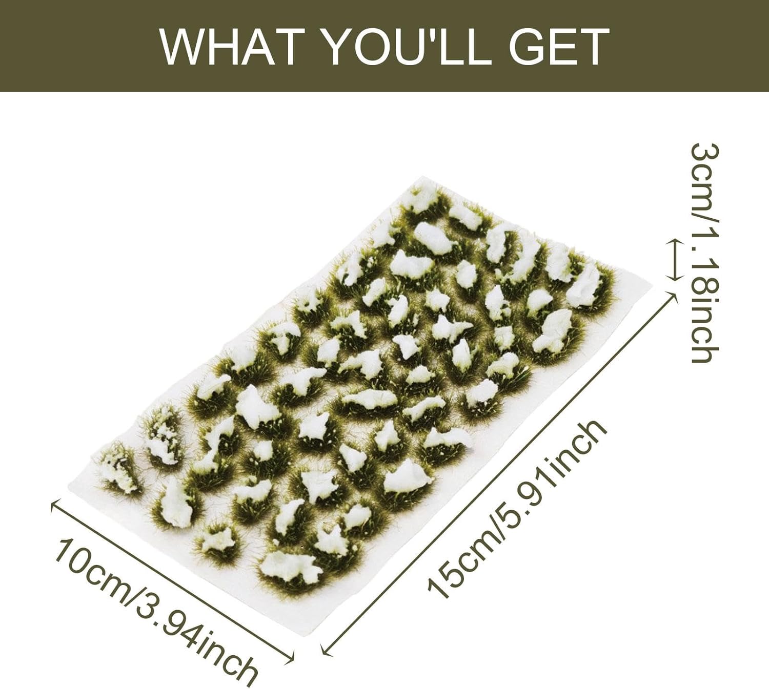 【Applicazione】: gruppi di erba di neve in miniatura adatti per tavoli da costruzione in sabbia, soldati, modelli di treni, layout ferroviari, paesaggi in miniatura, diorama, modelli di edifici, layout di scene ecc. 【Modello di ciuffo di erba innevata simulato】: Modelli di erba innevata in miniatura per treni scenici, tavoli di sabbia, produzione di scene, materiali scenici per edifici fatti a mano fai da te. 【Caratteristiche】: Modello con ciuffi folti, dettagli raffinati e proporzioni ragionevoli. Si abbina perfettamente alle scene in miniatura. La saturazione dell'erba è più vicina alla scena reale. 【Materiale】: Questi mini cristalli di neve sono realizzati in nylon, ideale per un uso a lungo termine. 【Adatto per】: Modello di ciuffo di arbusti di pianura artificiali adatto per modelli in scala, realistico