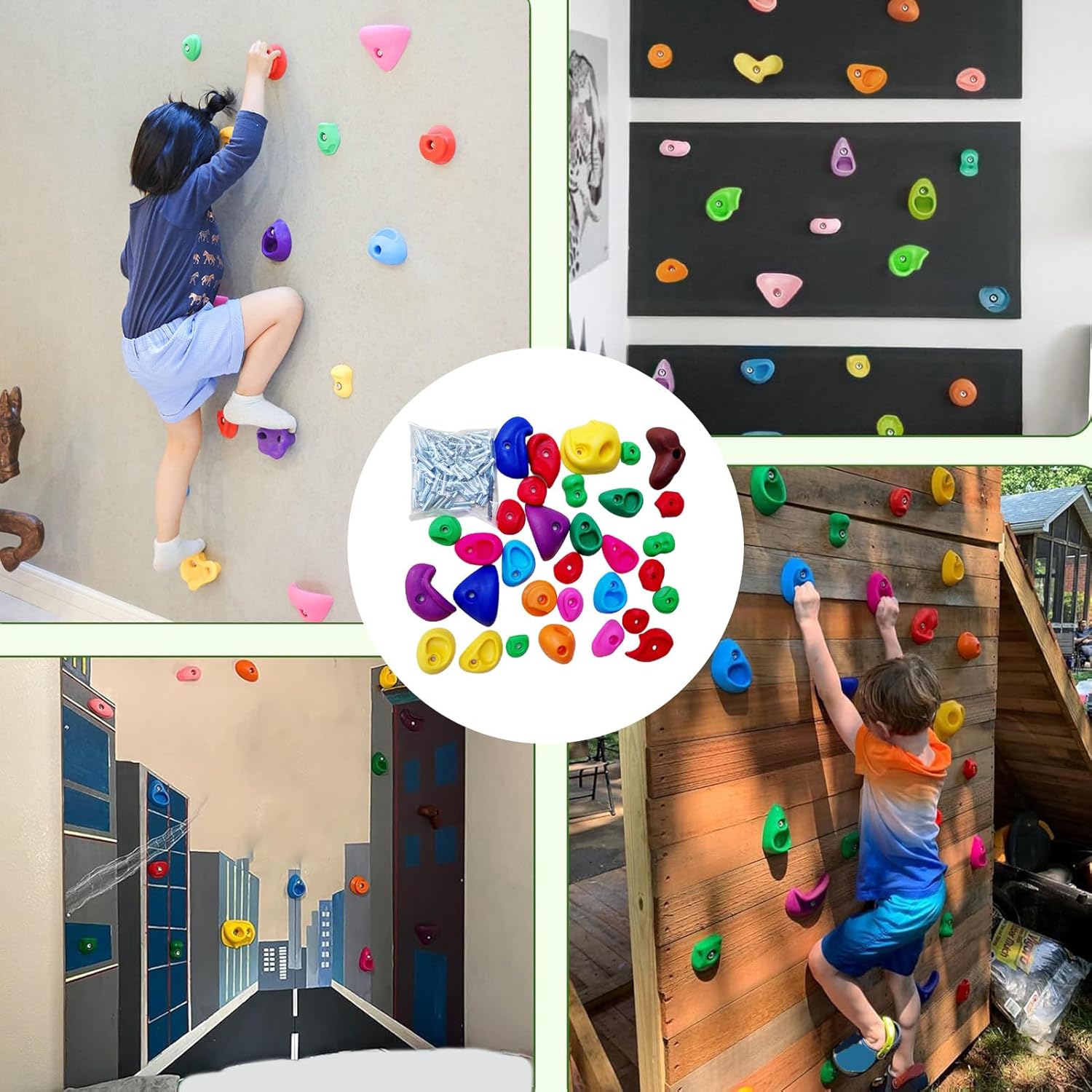 Sviluppo fisico: migliora l'agilità e la coordinazione totale del corpo durante l'arrampicata, incoraggiando lo sviluppo muscolare progressivo e rafforzando la perseveranza in modo giocoso Sicurezza ottimale: con una capacità portante certificata a 100 kg, queste prese da arrampicata sono ideali per giochi familiari o collettivi, offrendo un'esperienza stabile e sicura agli scalatori di età Anti-usura: finitura opaca in PE ad alta resistenza che offre una maggiore aderenza e resistenza alla deformazione per prestazioni costanti durante attività intense Regalo ideale: incoraggia il progresso dello sviluppo attraverso esperienze di arrampicata divertenti per adulti degli appassionati. Opzione divertente e premurosa per regali di compleanno o feste. Montaggio intuitivo: il design ingegnoso consente un fissaggio senza sforzo sui pannelli di spessore 3 cm. I tracciati multicolori sviluppano le capacità di pianificazione arricchendo il gioco immaginativo delle attività di arrampicata.