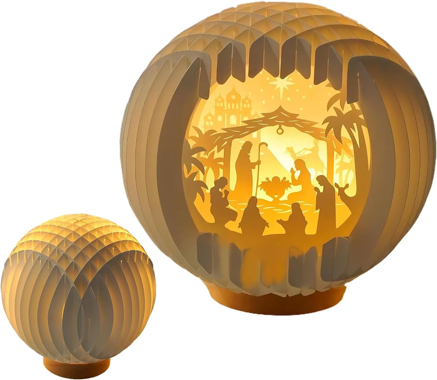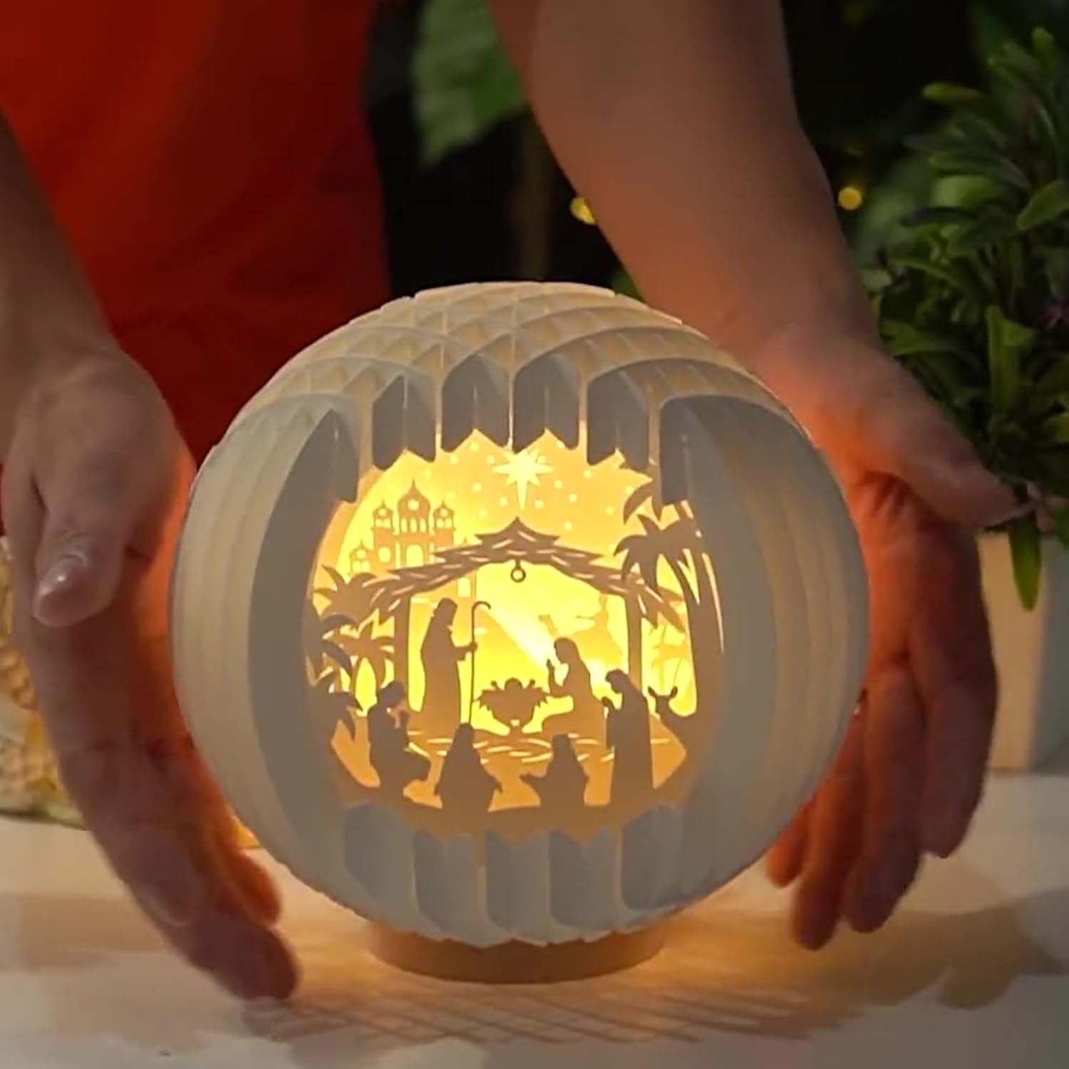 Arte 3D Paper-Cut: L'illuminazione LED integrata esalta il presepe con un effetto visivo a strati morbidi, creando un'atmosfera sacra e calorosa grazie alla lavorazione artigianale in paper-cut 3D che cattura l'attenzione in modo naturale e affascinante Regalo Ideale per le Feste: Un prezioso Presepe, realizzato con dettagli artigianali e ricco di significato culturale, è un pensiero per condividere calore spirituale e valore simbolico durante le occasioni più speciali e commemorative Impiego Multifunzionale: Completa l'albero di Natale e si a molteplici utilizzi in chiese e case. Il design sferico traforato lo rende adatto sia per l'esposizione appesa che da tavolo, esaltando in modo naturale tutte le decorazioni durante le celebrazioni natalizie. Design Artistico: Il Presepe presenta un intaglio a rilievo multistrato e figure 3D vivide, meticolosamente tagliate e assemblate a mano per un appeal da collezione artistico unico, mentre la lavorazione senza garantisce un'eleganza decorativa speciale per abbellire la tua casa Illuminazione Notturna Calda: Arricchisce gli allestimenti serali con una luce LED soffusa e piacevole, creando un bagliore avvolgente che non affatica la vista e garantisce una sicurezza ottimale grazie al minimo calore prodotto, per creare un'atmosfera suggestiva e accogliente in ogni ambiente
