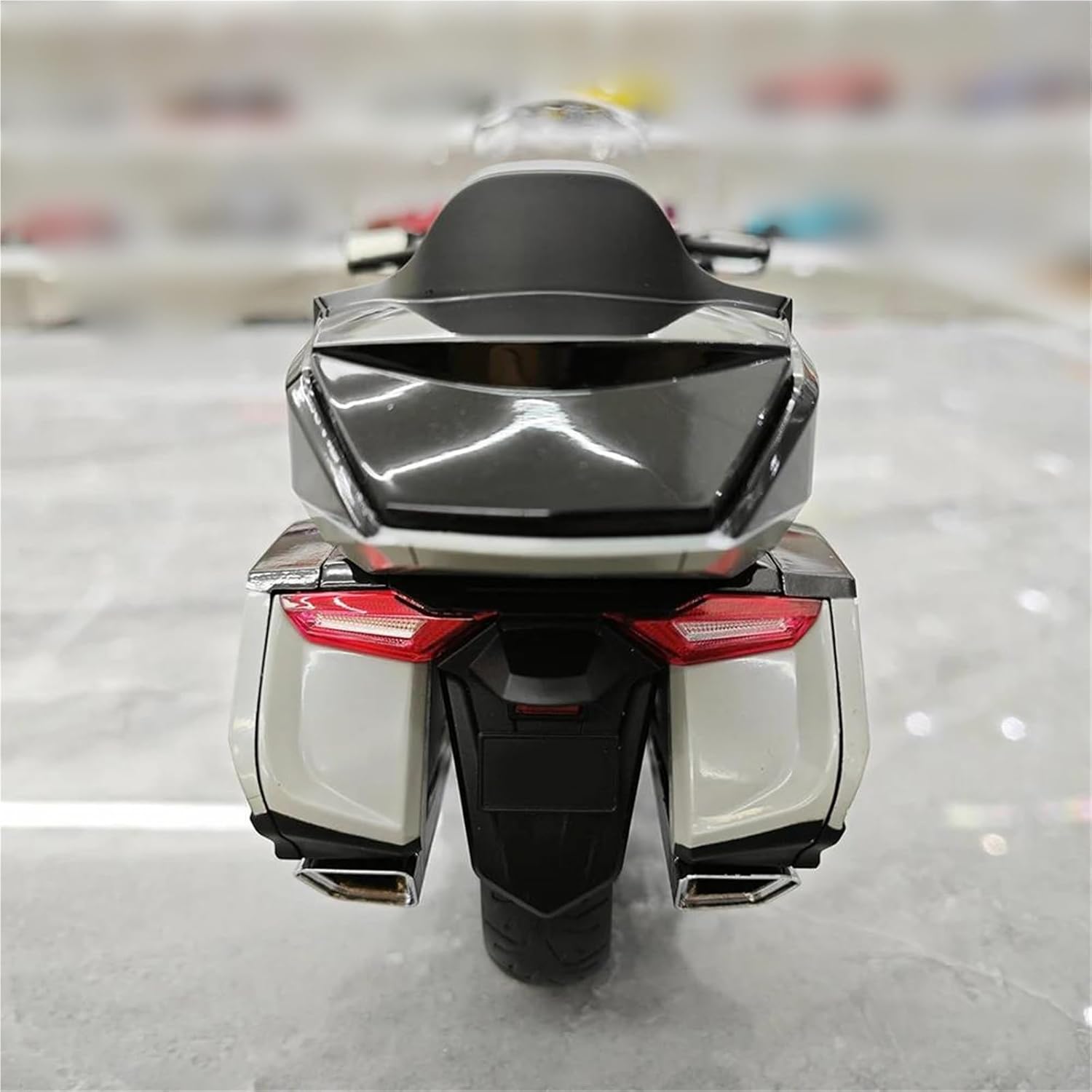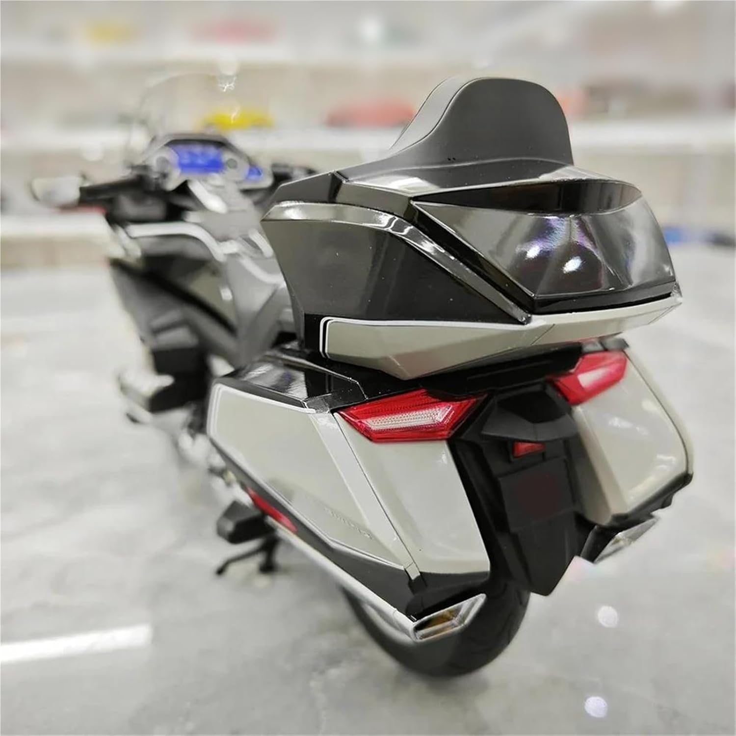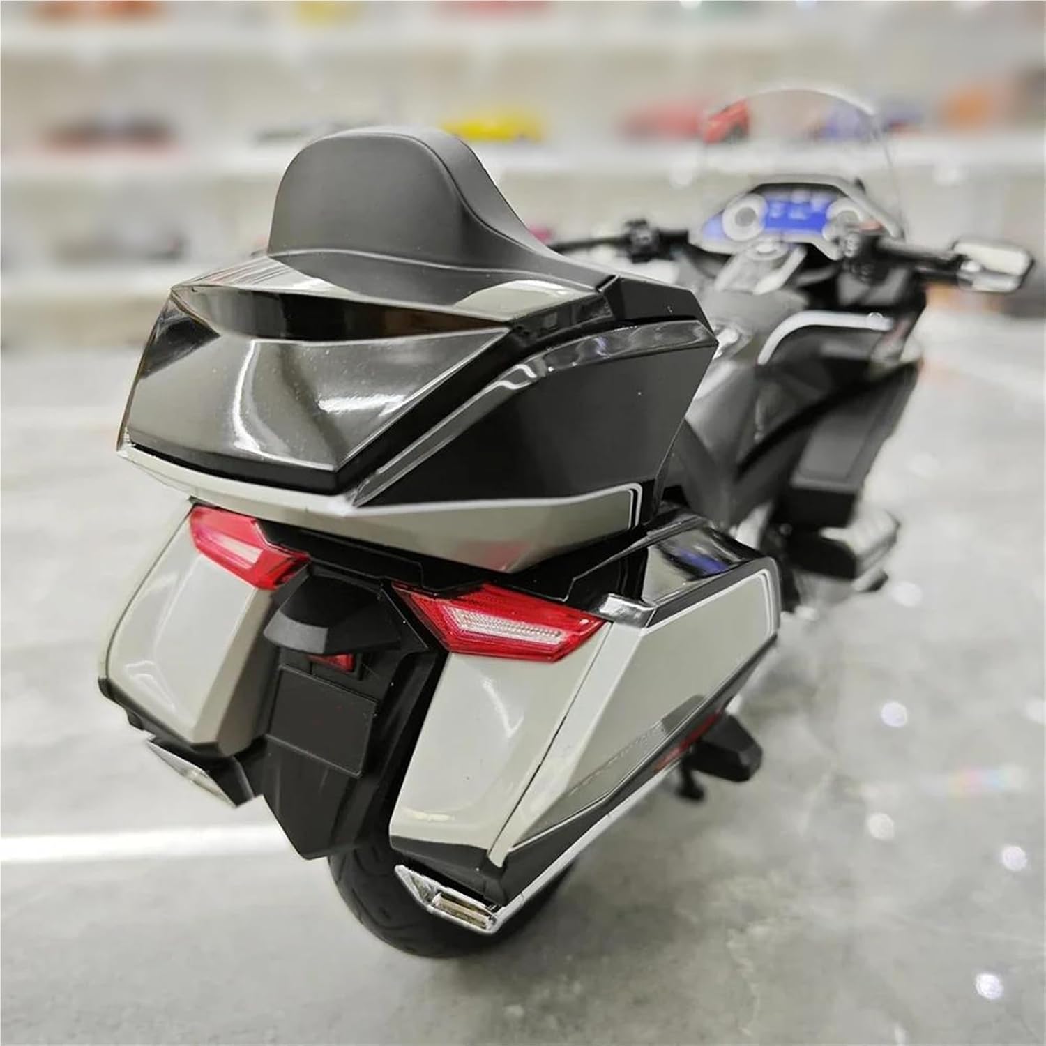 Modello di motocicletta per Gold Wing GL1800 1:12 Modello di auto giocattolo per motociclette, materiale: lega + ABS + gomma, dimensioni: circa 18*6*10 cm Il modello di motocicletta è un modello squisito realizzato in stretta conformità con la forma, la struttura, il colore, gli interni e altre proporzioni del veicolo originale. È un modello in miniatura del veicolo originale ed è progettato per riprodurre l'aspetto del veicolo originale. Realizzato in resistente lega di zinco, è resistente alle cadute e all'usura, garantendo la durevolezza del modello e la sua lunga conservazione. La finitura della vernice è uniformemente liscia, con colori vivaci e duraturi che resistono allo sbiadimento e alle scheggiature, garantendo un aspetto costantemente brillante.