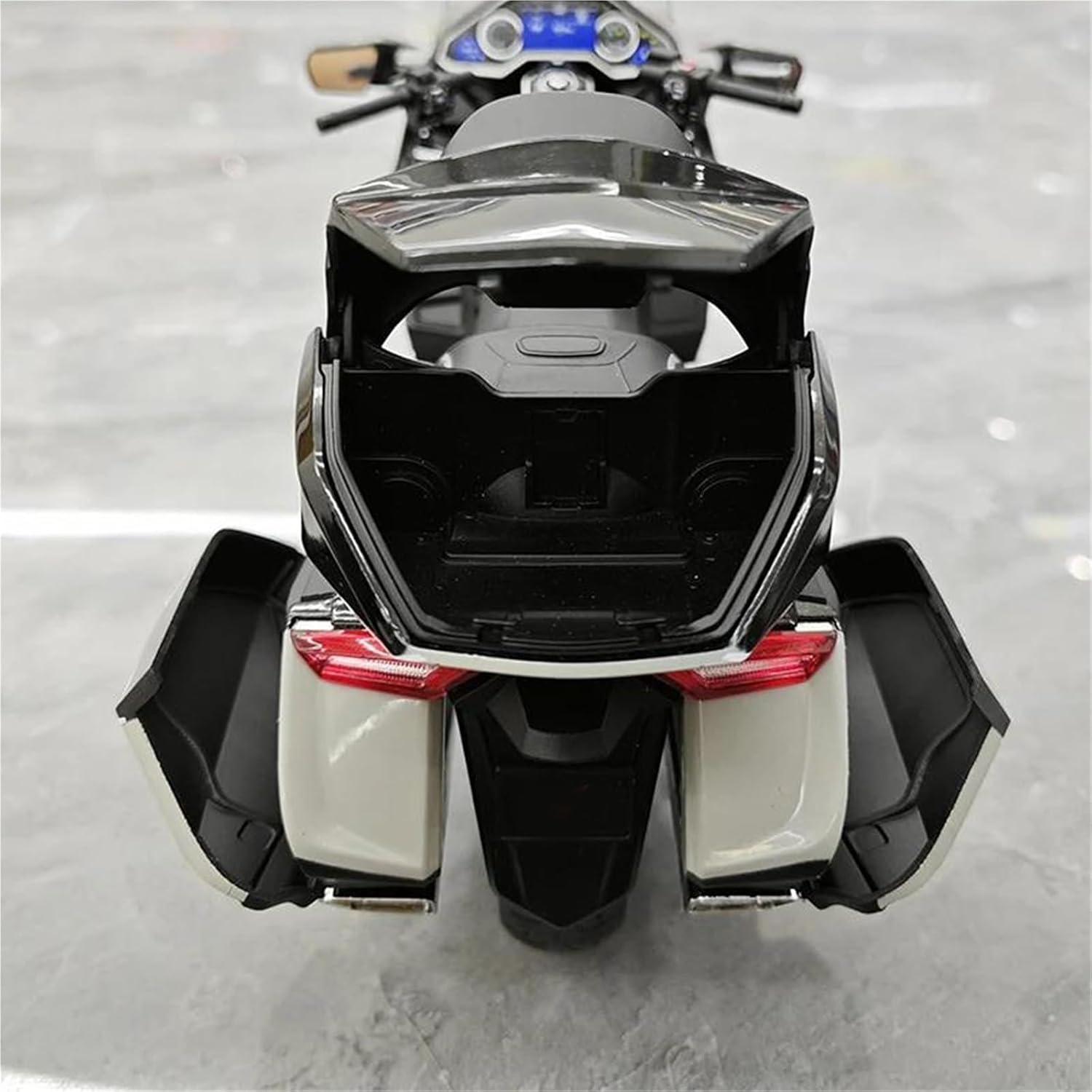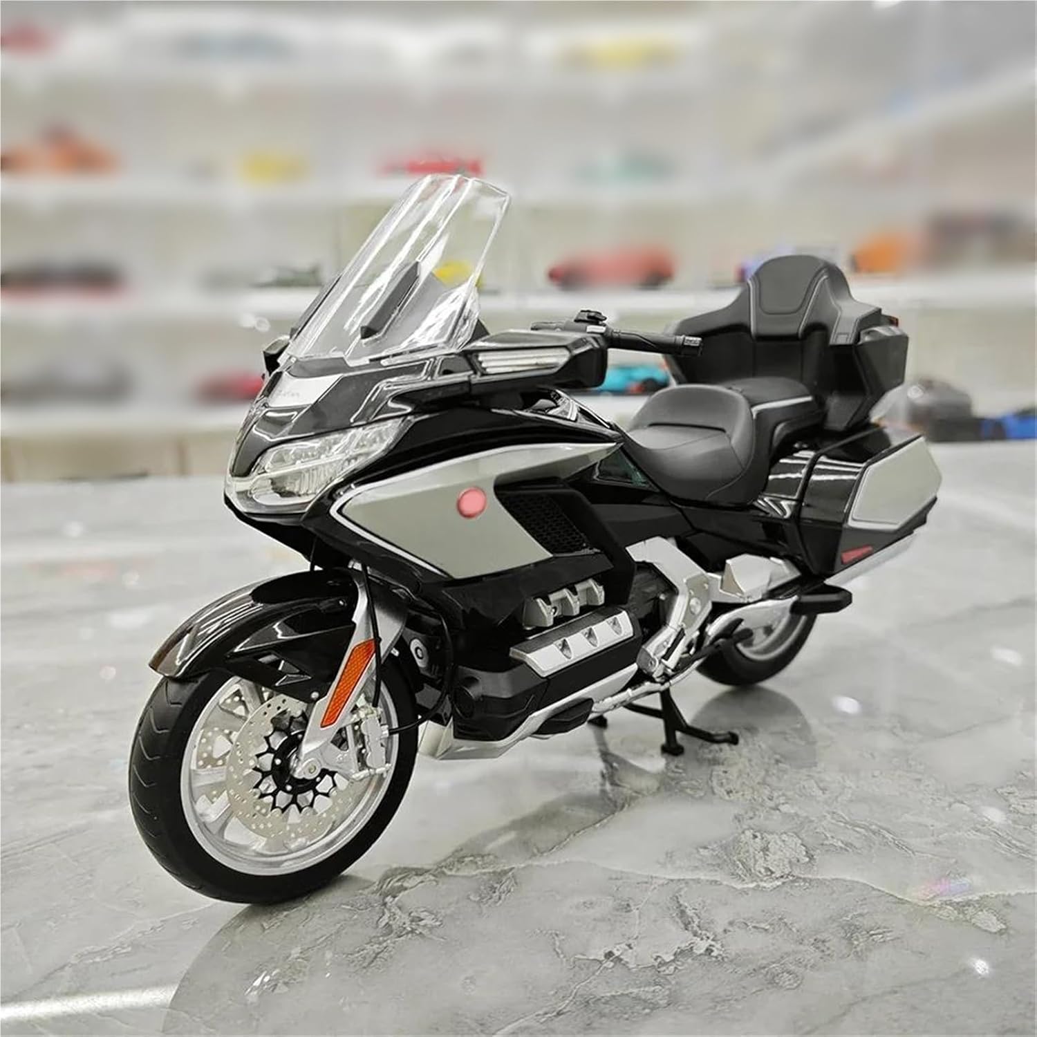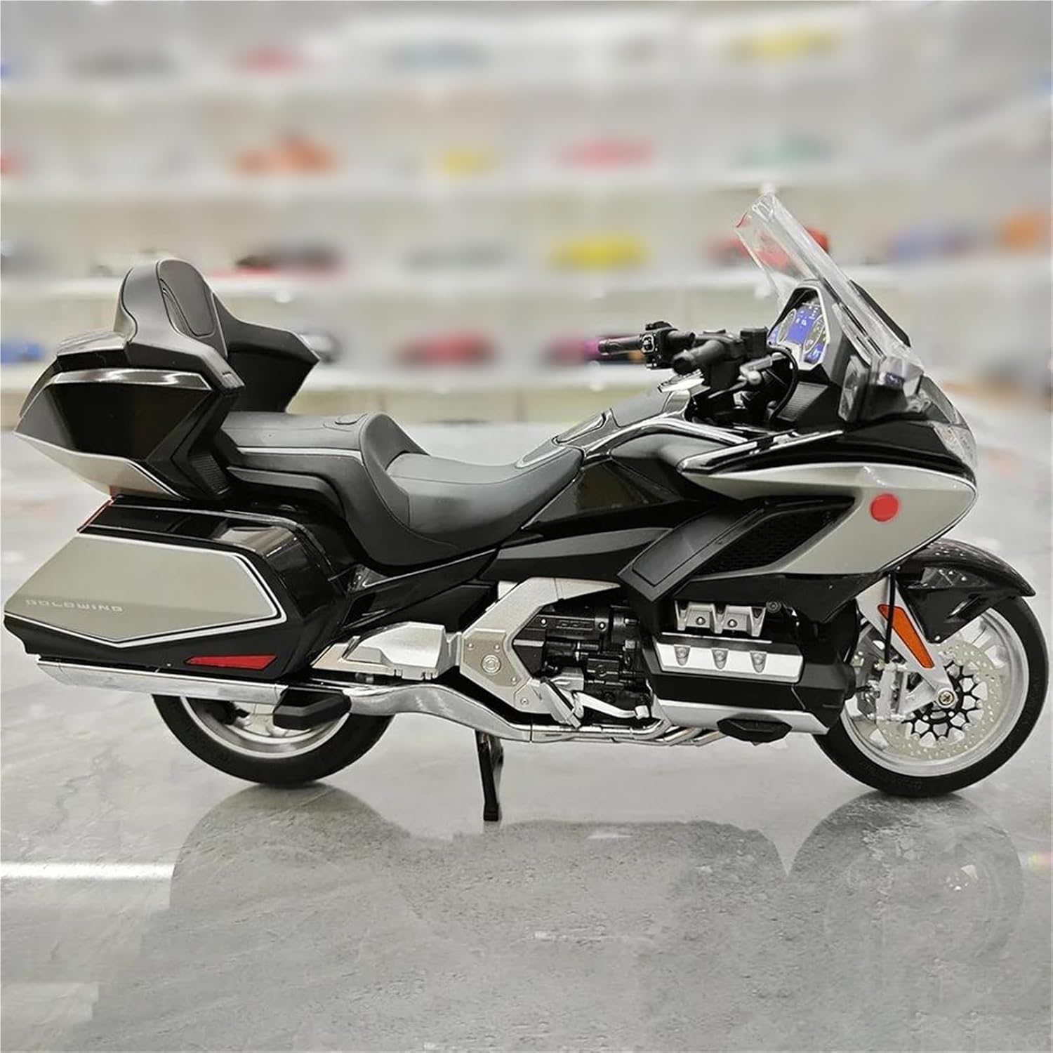 Modello di motocicletta per Gold Wing GL1800 1:12 Modello di auto giocattolo per motociclette, materiale: lega + ABS + gomma, dimensioni: circa 18*6*10 cm Il modello di motocicletta è un modello squisito realizzato in stretta conformità con la forma, la struttura, il colore, gli interni e altre proporzioni del veicolo originale. È un modello in miniatura del veicolo originale ed è progettato per riprodurre l'aspetto del veicolo originale. Realizzato in resistente lega di zinco, è resistente alle cadute e all'usura, garantendo la durevolezza del modello e la sua lunga conservazione. La finitura della vernice è uniformemente liscia, con colori vivaci e duraturi che resistono allo sbiadimento e alle scheggiature, garantendo un aspetto costantemente brillante.