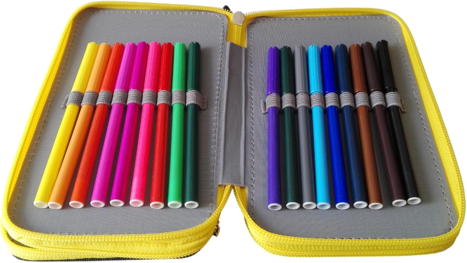 ✔️Astuccio scuola completo di cancelleria per la scuola ✔️CARATTERISTICHE Dimensione: 20 x 12,5 x 7 cm. Tessuto polyestere 900D resinato e fodera polyestere 150D stampata. ✔️CONTIENE: 18 pennarelli, 18 matite colorate, matita, gomma, righello, penna rossa e penna blu. Prodotto completo ideale per la cancelleria di bambine e bambini ✔️Omaggio portachiave linea Prestige & Deluxe