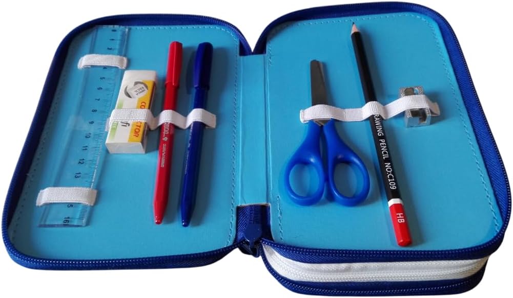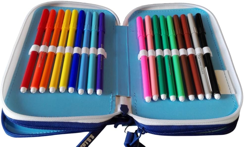 ✔️Bellissimo astuccio ufficiale per il tifoso della Lazio! ✔️CARATTERISTICHE Dimensione: 20 x 12,5 x 7 cm. Tessuto polyestere 900D resinato e fodera polyestere 150D stampata. ✔️Astuccio 3 piani zip, contiene:Righello, gomma. 2 penne blu rossa, forbici, matita, temperamatita, 18 pennarelli Giotto,18 pastelli Fila ✔️Scopri il fantastico astuccio portapenne ovale. Un accessorio perfetto per rendere ogni giornata di scuola o lavoro più divertente e colorata. Astuccio Scuola Zip dimensioni 22 x 8 x 5 cm ✔️Omaggio portachiave fischietto linea Prestige & Deluxe