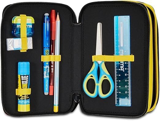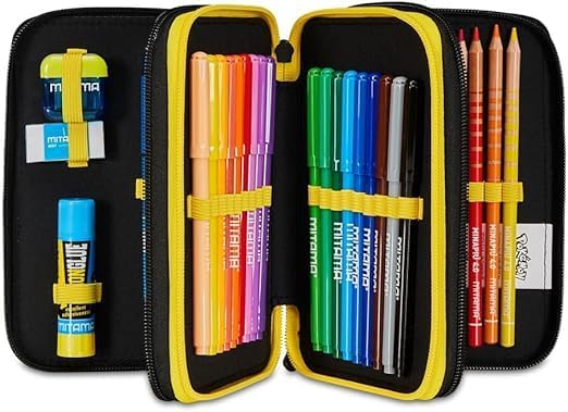 ✔️Astuccio Scuola apertura 3 scomparti con zip. Elastici portamatite in contrasto colore.Dimensione: 12,5 x 19,7 x 7 cm ✔️Contenuto 44 pezzi 18 pastelli tondi 4.0 in cedro Mitama 18 pennarelli 1 penna cancellabile blu 1 penna a sfera rossa 1 matita HB 1 gomma 1 temperino barilotto 2 fori 1 colla 1 righello 1 forbice in metallo ✔️Agenda scuola standard 2025-2026, prodotto ufficiale ed originale Informazioni : agenda 10 mesi , pagine a quadretti, copertina plastificata, corda segnalibro in tessuto Formato standard, dimensioni: 15x20 cm ✔️Omaggio portachiave , personaggio casuale secondo disponibilità e penna multicolore linea Prestige & Deluxe