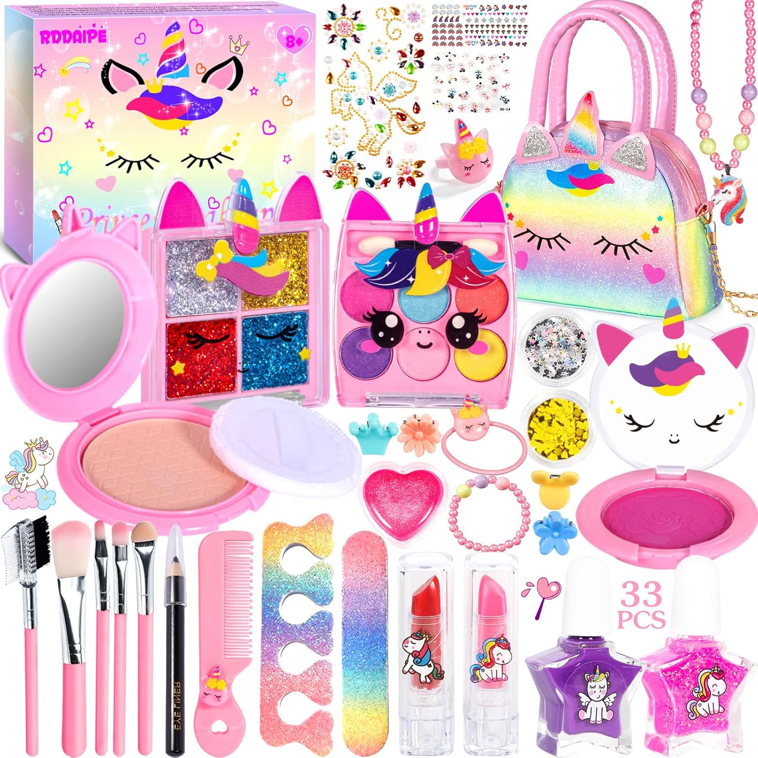 La fantasia delle principesse non ha limiti: con questo kit trucco per bambini, i bambini potranno liberare la loro creatività e trascorrere ancora più ore di divertimento. Completo di un kit per il trucco, un kit di accessori per unghie, un set di strumenti per il trucco e una graziosa borsa per il trucco Design adatto ai bambini: questo kit per il trucco è realizzato con materiali ecologici, morbidi e solubili in acqua, garantendo un design sicuro che può essere facilmente lavato con acqua e sapone, consentendo un gioco senza preoccupazioni Pratico e facile da trasportare: dai il benvenuto al nuovo giocattolo preferito di tuo figlio. Questo kit per il trucco ha una maniglia per il trasporto che facilita lo stoccaggio e il trasporto. Questo set molto leggero e portatile è molto facile da trasportare e consente a tuo figlio di godersi i suoi cosmetici preferiti ovunque tu vada. Gioco fantasioso: i giocattoli per ragazze vanno oltre i cosmetici e offrono un'avventura artistica e artigianale in cui i bambini si divertono a creare trucchi e acconciare se stessi, gli amici o le sorelle con le loro idee uniche. Regalo ideale: rendi il primo giorno dei tuoi figli un'esperienza indimenticabile con il nostro kit di trucco per bambini. Questa è una meravigliosa selezione di idee regalo adatte per compleanni, Halloween, Natale e festività. Ideale per le bambine che amano giocare a travestirsi
