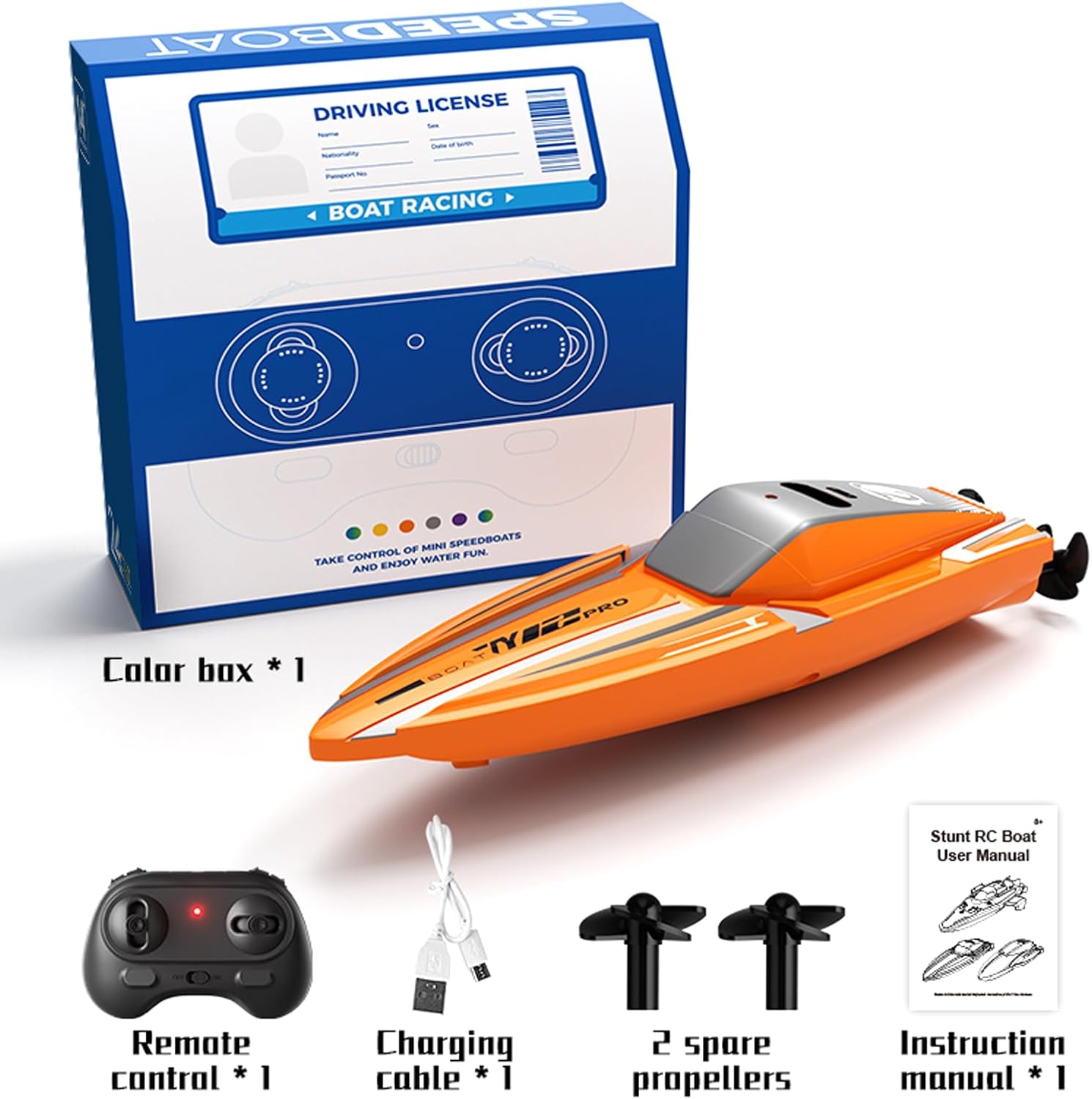 [VELOCITÀ E MANOVRABILITÀ MIGLIORATE] Ridurre la resistenza all'acqua per velocità più elevate e un migliore controllo sull'acqua. [DESIGN RESISTENTE AI SCHIZZI] La tecnologia impermeabile sigillata garantisce un funzionamento senza preoccupazioni anche in caso di schizzi. [FUNZIONALITÀ AUTO ON/OFF] La funzione di rilevamento dell'acqua attiva e disattiva automaticamente la barca per comodità e sicurezza. [EMOZIONANTI ABILITÀ DI STUNT] Due potenti motori consentono emozionanti acrobazie rotanti per giochi avventurosi e facili attività ricreative. [MULTI-BOAT RACING] La tecnologia di controllo remoto 2.4G consente a più barche di gareggiare contemporaneamente senza interferenze, perfetta per i giochi competitivi.