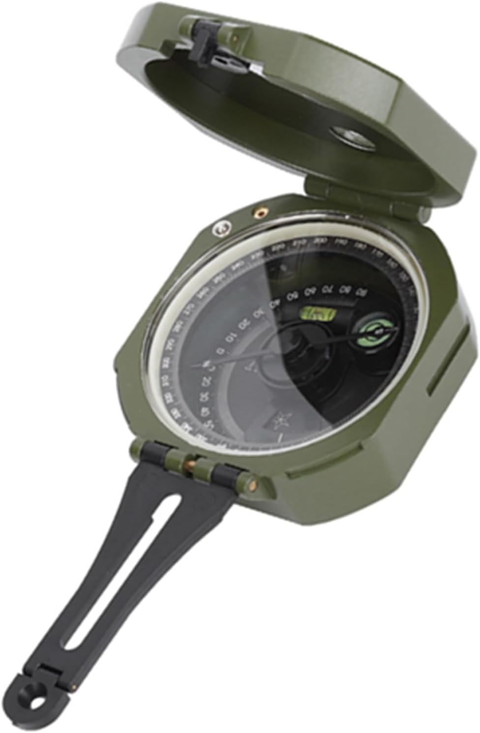 Adotta materiale in lega di zinco ad alta resistenza, resistenza agli urti e allo schiacciamento, rilascio della pressione di viaggio. Regolatore di declinazione magnetica, può correggere manualmente la declinazione magnetica, maggiore precisione. Effetto luminoso, più lungo è il tempo di esposizione continua, più lungo sarà il display luminoso. Bussola geologica multifunzionale, la scala del quadrante è chiara, facile da leggere. Adatto a diverse occasioni come indagini geologiche, orienteering, avventure all'aria aperta, ecc.