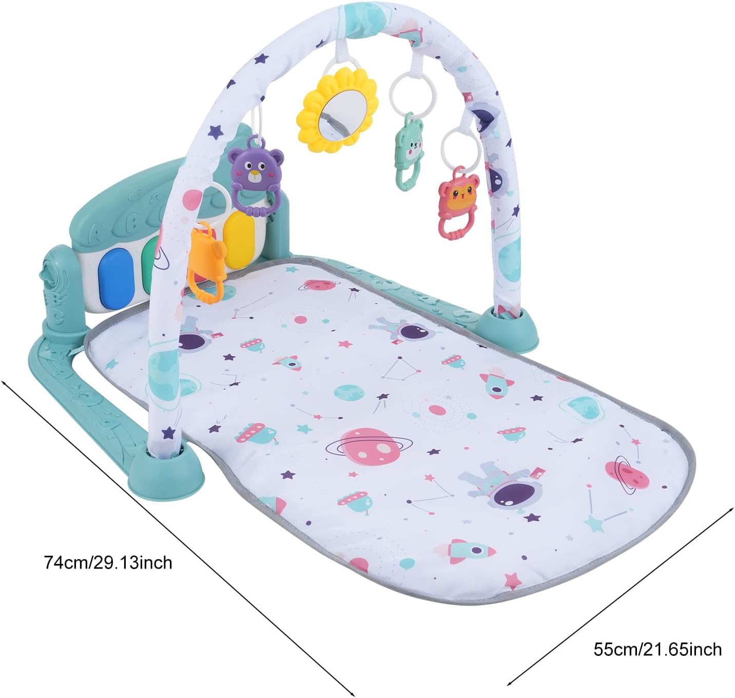 [ESPERIENZA DI GIOCO MUSICALE] La tastiera del riproduce melodie allegre e promuove lo sviluppo sensoriale e le capacità motorie attraverso suoni e musica. [COLORATI GIOCATTOLI DA APPENDERE] Include 4 simpatici giocattoli e specchio girasole per il riconoscimento dei colori, la scoperta di sé e la coordinazione occhio-mano. [FACILE DA PULIRE] Questo tappetino da gioco è realizzato con materiali morbidi ed è facile da pulire, piegare e trasportare per essere comodo e portatile. [RAFFORZAMENTO FISICO] Progettato per supportare importanti traguardi dello sviluppo e rafforzare i gruppi muscolari chiave dei neonati. [SICURO E CONFORTEVOLE] Fornisce al bambino spazio accogliente e sicuro per giocare ed esplorare, realizzato con materiali morbidi e traspiranti.