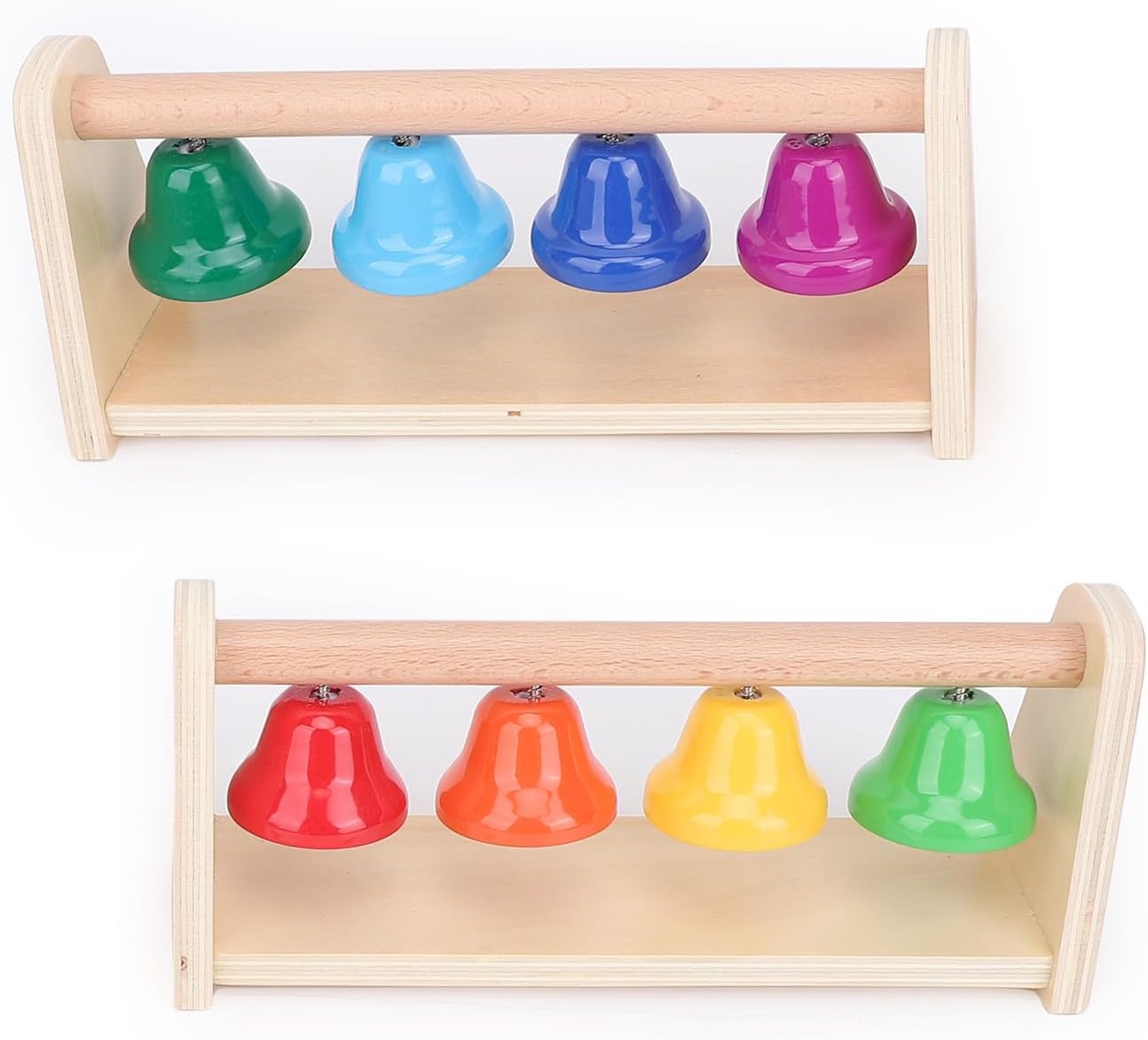 [ESPLORAZIONE MELODICA] Un'ottava intera di campane di metallo in 8 colori abbaglianti risveglia la curiosità musicale. [APPRENDIMENTO COLORATO] La combinazione di colori vibranti migliora la percezione uditiva e visiva e fornisce illuminazione musicale. [MATERIALE PREMIUM] Realizzato in legno massello naturale con un processo di smalto a cottura premium per un uso sicuro ed ecologico. [MIGLIORA LA COORDINAZIONE] Battere con le mani sinistra e destra promuove la coordinazione occhio-mano e il senso del ritmo. [DIVERTIMENTO INTERATTIVO] Include 2 mazze per l'interazione genitore-figlio, offrendo molteplici opportunità per divertirsi e imparare insieme.