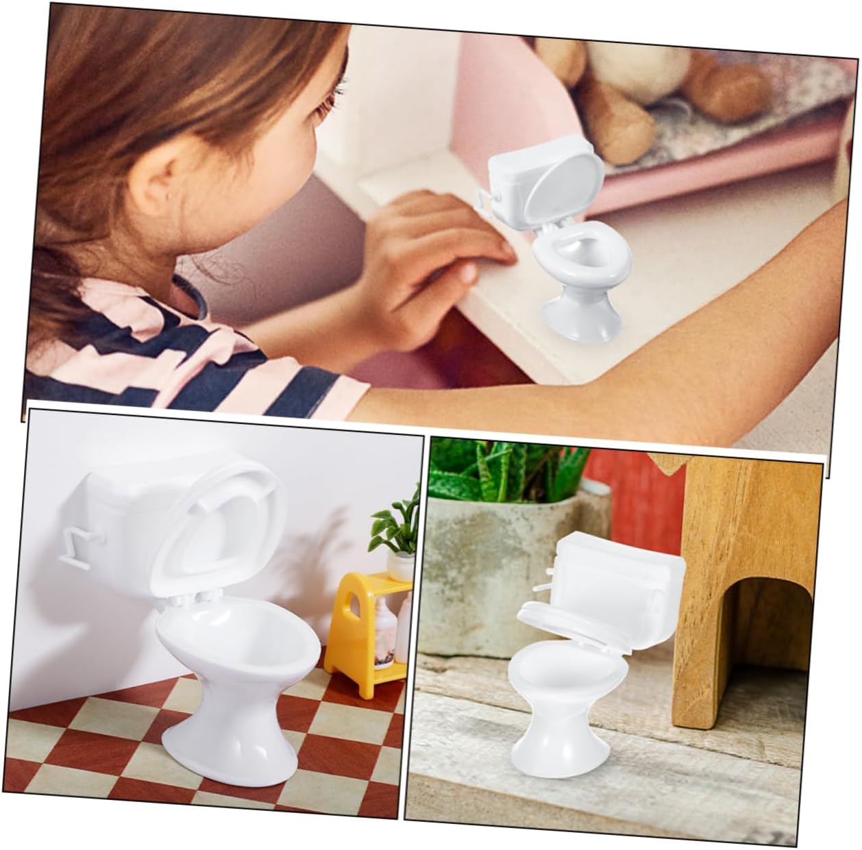 Accessori versatili: questo set include mobili da bagno per case delle bambole, una varietà di opzioni per decorare e giocare, set da bagno per bambole, toilette in miniatura per case delle bambole Scala ideale: progettati per le case delle bambole in scala, questi servizi igienici in miniatura sono l'aggiunta per migliorare l'aspetto generale e la sensazione della tua casa delle bambole, mini servizi igienici realistici, di servizi igienici Materiali sicuri: realizzati in plastica, questi mini servizi igienici sono sicuri e progettati per durare attraverso innumerevoli giochi, mobili per mini case, servizi igienici in plastica per case delle bambole E sicuro: realizzati in plastica, questi mini sedili per wc sono sicuri e costruiti per resistere a ore di gioco, wc per mini casa, mini wc Miniatura realistica: il piccolo water aggiunge un tocco realistico a qualsiasi casa delle bambole, rendendolo più coinvolgente e divertente con cui giocare, decorazione per torta con mini water, mini water per casa delle bambole