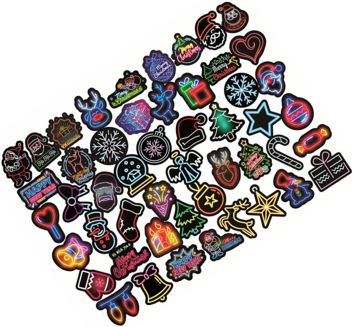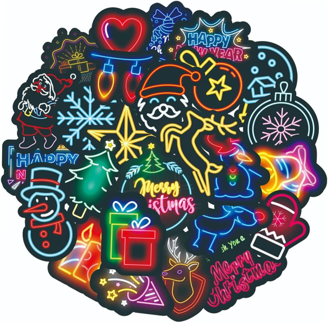 Adesivi graffiti natalizi - Adesivi natalizi con effetto luce al neon, che donano alla tua famiglia un'atmosfera festosa, molto adatti come decorazione natalizia, adesivi graffiti neon natalizi Ornamento adesivo neon natalizio - Gli adesivi natalizi sono per adolescenti e adulti per decorare bottiglie d'acqua, computer portatili, valigie, custodie per telefoni, ecc. Atmosfera festosa, crea un'atmosfera natalizia più intensa per la tua famiglia, adesivi per bottiglie di Natale Adesivi natalizi: rendi la tua festa di Natale più bella, vivace e affascinante. Adesivi per graffiti al neon di Natale Adesivi per graffiti di Natale: ideali per adolescenti, amici e familiari a Natale portano più divertimento e gioia Adesivi al neon di Natale