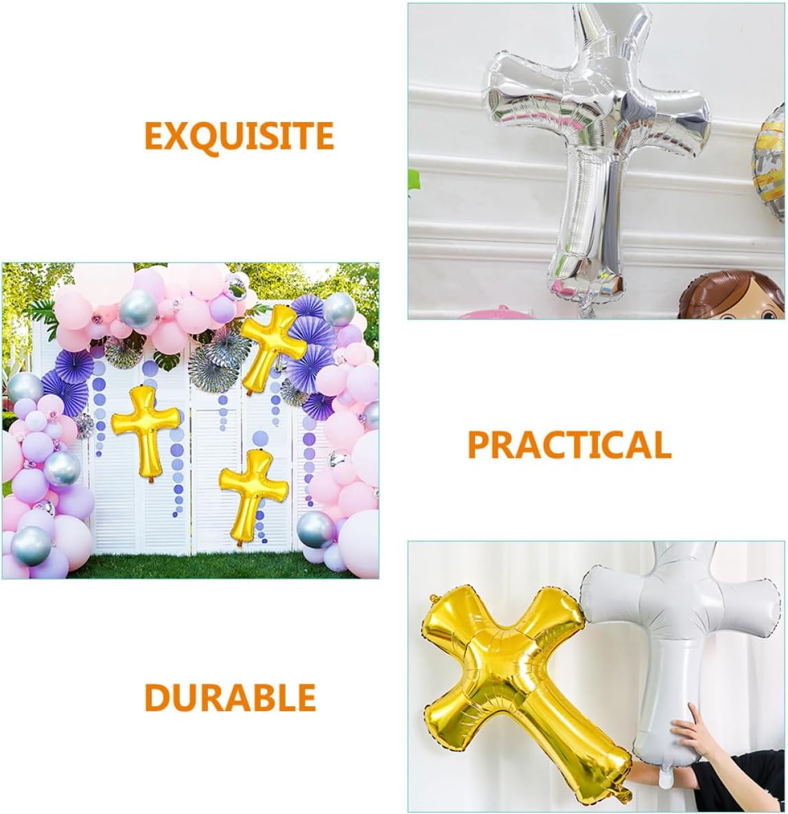 Quantità abbondante: riceverai più palloncini in alluminio incrociato in quantità sufficiente per soddisfare le tue varie esigenze e sostituzioni, palloncino di compleanno, palloncino in alluminio Facili da usare: questi palloncini in foil incrociato sono semplici da usare, basta usare una pompa dell'aria (non inclusa) per riempirli con aria o elio, quindi appiattire il foro del palloncino e fare un nodo nella inferiore del palloncino usando una corda, palloncini di compleanno, palloncini per battesimo Palloncini per feste di matrimonio: puoi attaccarli al muro, alla finestra o alla porta, puoi lasciarli sospesi nell'aria, palloncini per battesimo a croce Decorazione con palloncini per feste: questi palloncini decorativi possono essere utilizzati in molte occasioni, come feste di compleanno, raduni, ecc., palloncini a forma di croce per il compleanno Forniture per feste di compleanno: possono essere utilizzate come oggetti di scena per foto, decorazioni per feste, spettacoli, ingressi, , ecc., decorazioni per feste di compleanno