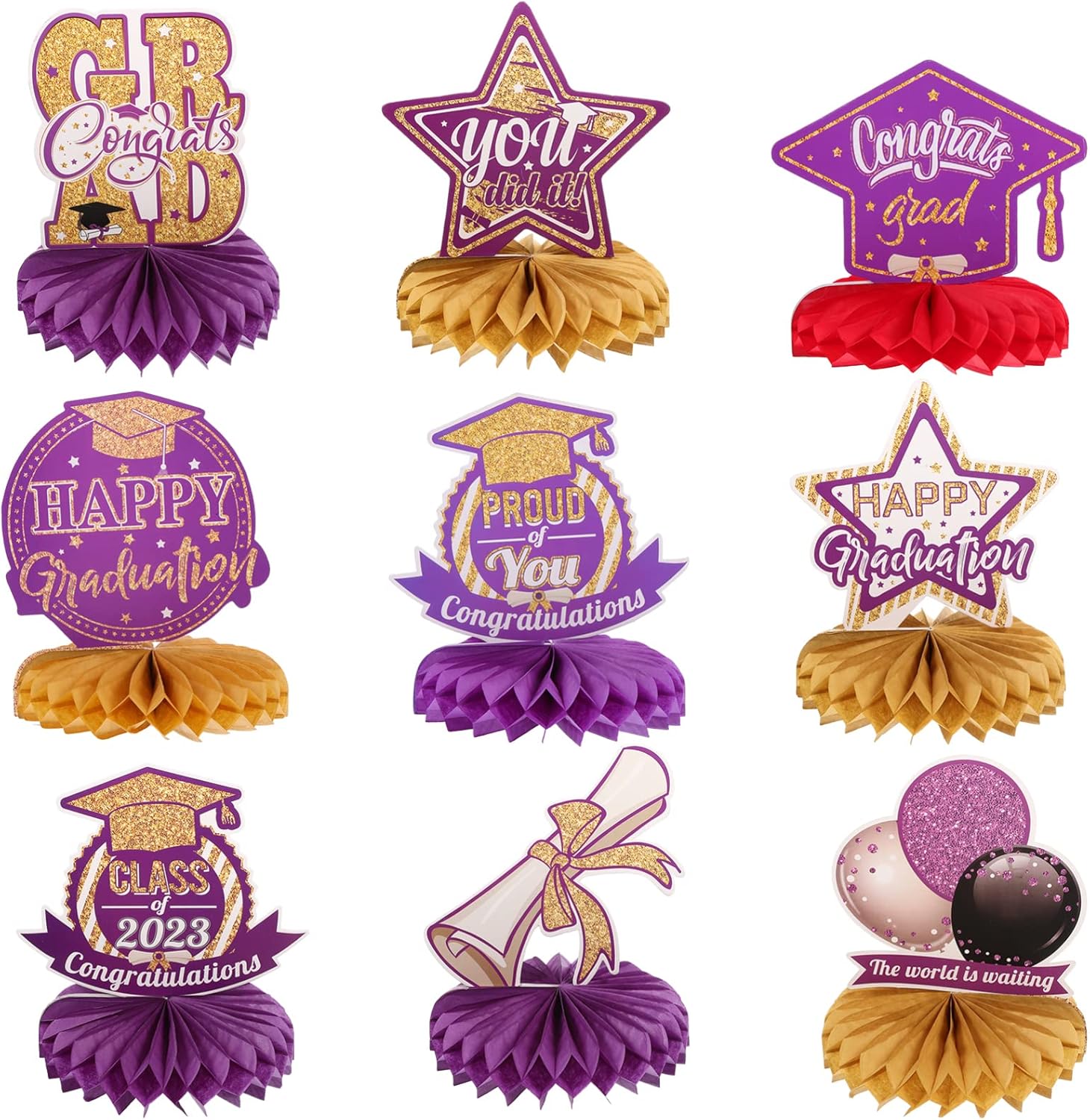 PRETYZOOM 9pezzi Decorazioni Nido d Api di Carta per Festa di Laurea Ornamenti per Laurea Addobbi per Festa di