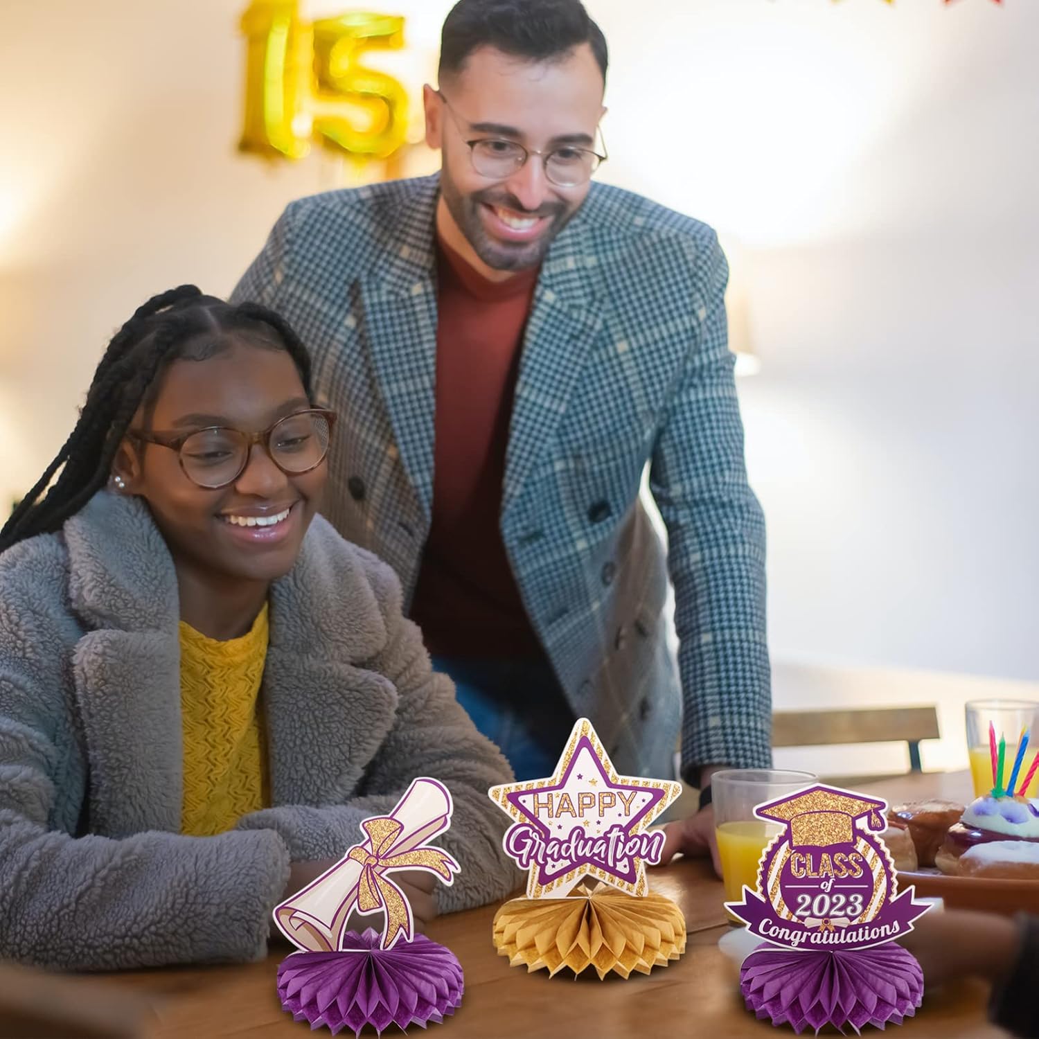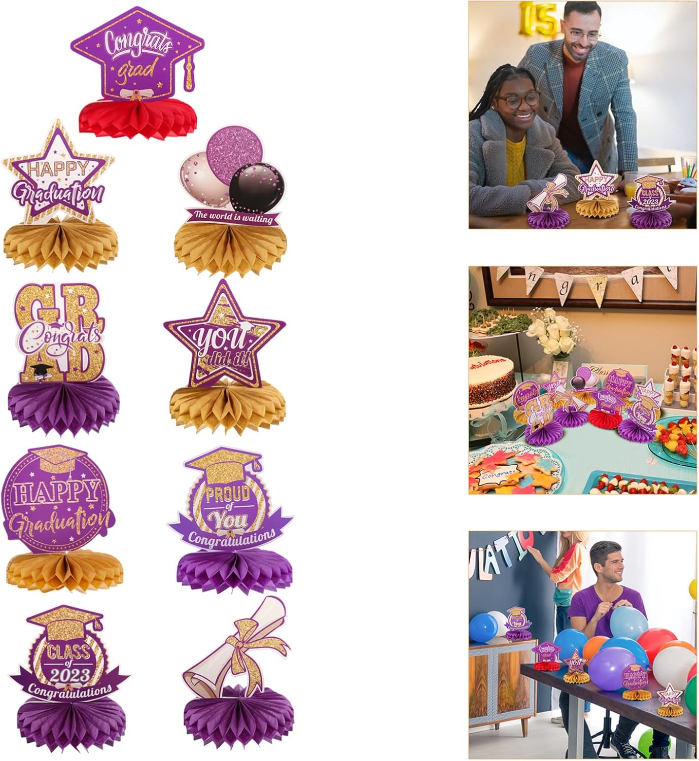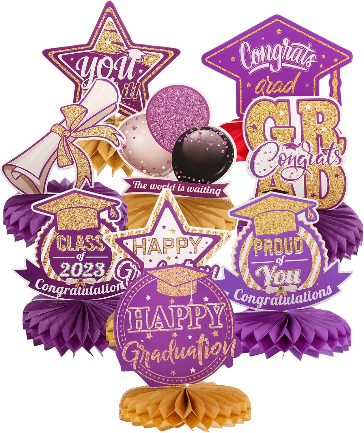 La decorazione della vostra casa della vostra festa con i nostri centrotavola a nido d'ape sarà un successo alla vostra festa. Le decorazioni per lavagne sono realizzate in carta di alta qualità con tecnologia di stampa sensibile laminata superficiale, che è robusto e inodore. Adatto per feste di laurea, la decorazione di sfondo può creare un'atmosfera alla festa. Un po' di atmosfera, mettendo le decorazioni a nido d'ape per la festa di laurea al centro del tavolo, le fantastiche decorazioni di laurea sono abbastanza impressionanti da essere notate. Le bacheche sono squisitamente progettate con interessanti elementi di chiusura, in modo che tutti apprezzino i design chic.
