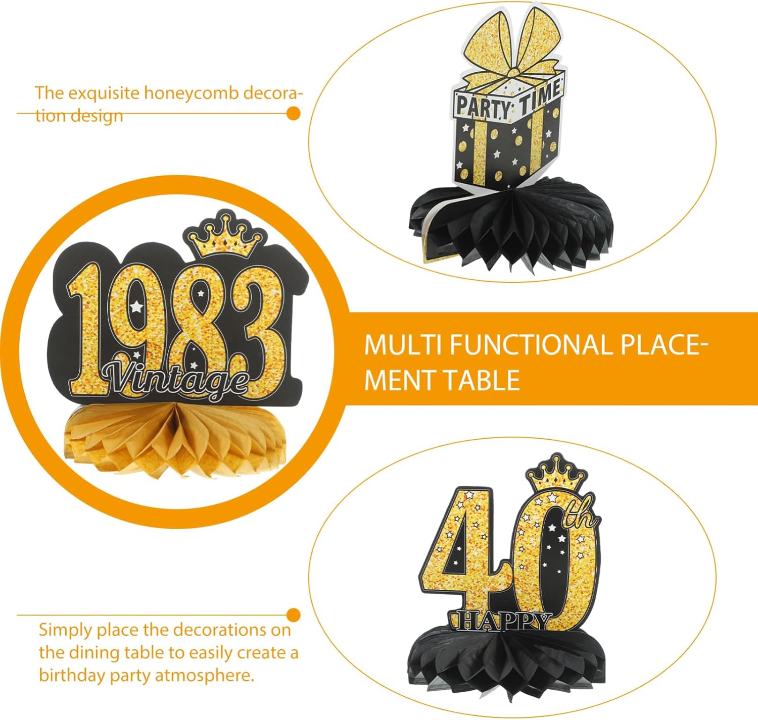 Centrotavola a nido d'ape per festa di compleanno: queste decorazioni centrotavola di compleanno sono adatte per decorazioni per la casa, il giardino e le feste, oggetti di scena decorativi per il compleanno Decorazioni di compleanno: il set di decorazioni a nido d'ape è una buona opzione di decorazione di compleanno per bar, centri commerciali e decorazioni di aziende, oggetti di scena per feste di compleanno Decorazione festiva: puoi anche usare questi centrotavola per scattare foto più e lasciare momenti indimenticabili, forniture per feste di compleanno Decorazioni a nido d'ape per feste di compleanno: questi centrotavola a nido d'ape per compleanno possono essere utilizzati anche come oggetti fotografici da utilizzare per scattare foto, decorazioni molto pratiche con palline a nido d'ape Decorazioni per feste di compleanno: le decorazioni in carta a nido d'ape possono essere posizionate sulla scrivania, sul caminetto o appese per decorare la parete, decorazioni per la casa di compleanno
