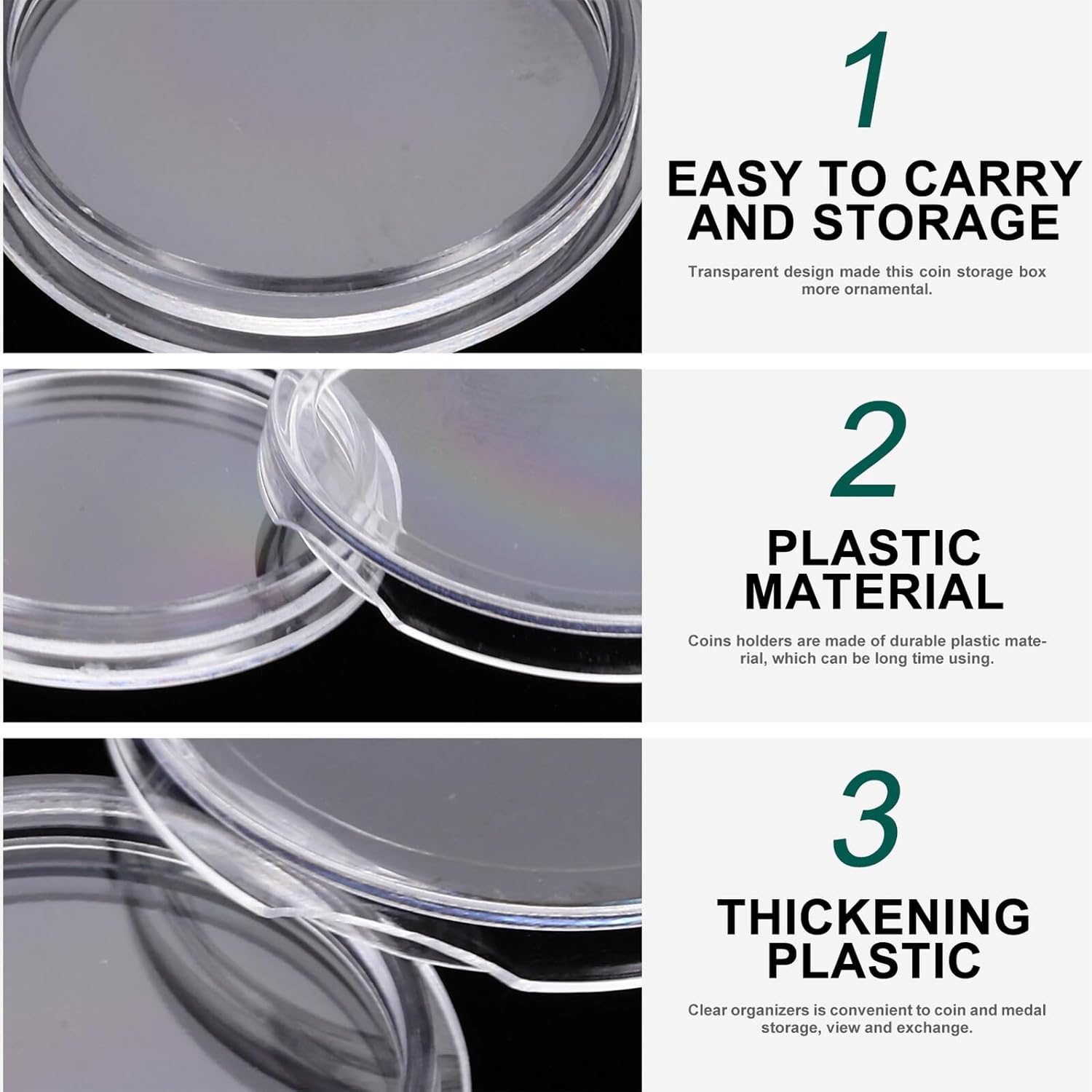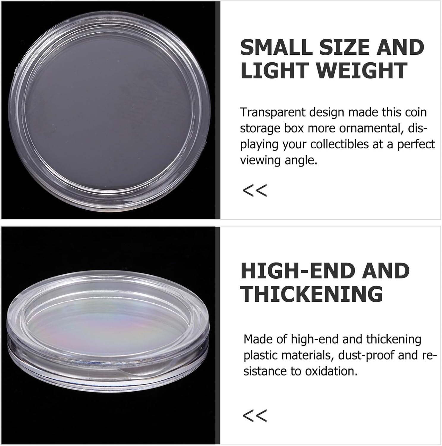 Capsula portamonete portatile: ha un design semplice ma è molto pratica da usare. Puoi usarli in molte occasioni, per collezionare e consegnare Portamonete portatile: realizzato in plastica per un uso sicuro, puoi riporre e proteggere la tua moneta commemorativa e il portamonete Salvamonete professionale: adatto per la maggior parte dei tipi di monete, impedisce alle monete di scivolare e graffiarsi, pratico portamonete Porta capsule per monete: realizzato in materiale plastico di alta qualità e ispessimento e resistente all'ossidazione, Portamonete professionale Pratica protezione per monete: il design trasparente è un buon modo per esporre le tue monete, molto pratico e conveniente, protezione per monete trasparente
