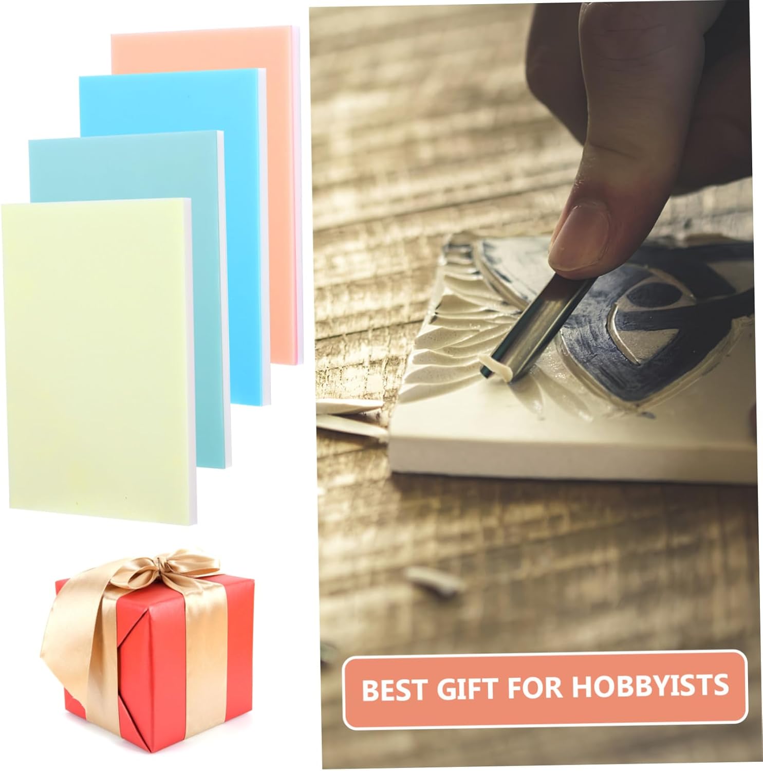 Facile per gli appassionati del fai da te: base morbida e dettagli raffinati, è più facile realizzare il tuo processo fai da te fatto a mano, leggero e facile da usare, stampa per realizzare blocchi di gomma, blocchi di stampa in gomma Uso a doppio strato: design a doppio strato, ti consente di sfruttare al massimo i materiali e di sviluppare maggiormente la tua creatività, timbri, accessori per stampa a blocchi Divertiti: quando fai da te, non solo puoi avere un senso di realizzazione, ma anche migliorare le tue abilità pratiche Design a doppio strato: il blocco di gomma è diviso in due strati ed entrambi i lati possono essere aperti, per soddisfare le tue diverse esigenze esigenze, blocco timbro, blocco intaglio in gomma Durevole e affidabile: realizzato in materiali PVC, compatto e durevole, questo timbro da intaglio a doppio strato è flessibile nell'uso, incide timbri, blocchi di stampa