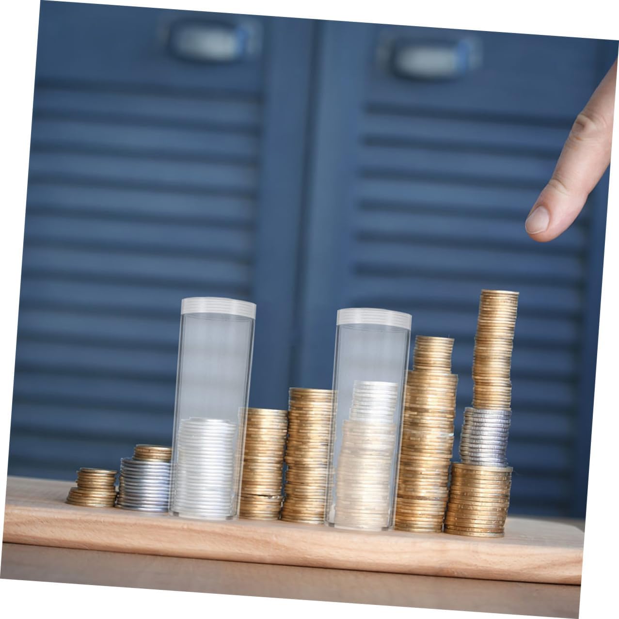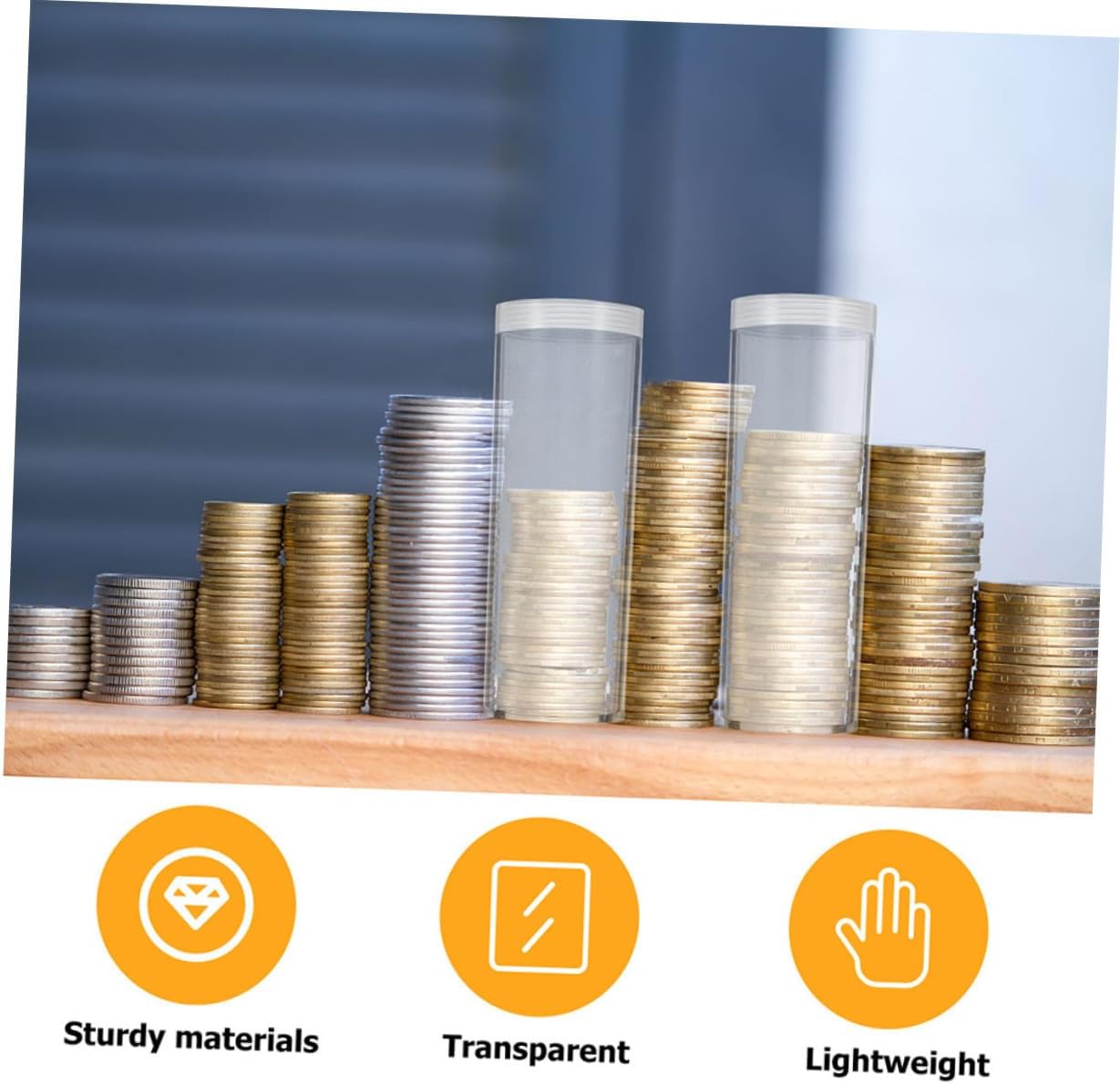 Pratico portamonete: facile stoccaggio di rotoli di monete e monete singole, conteggio delle monete un gioco da ragazzi, portamonete in plastica, tubi contamonete Per monete commemorative: progettato specificatamente per monete commemorative, garantisce una vestibilità ottimale e ne mantiene l'integrità, tubi portamonete quarti, tubo protezione monete Compatibilità con monete commemorative: appositamente progettato per contenere monete commemorative progettato per garantirne la protezione, contenitore per tubi portamonete, contenitore per monete in plastica Multiuso: ideale per collezioni personali, mostre e bomboniere, per varie esigenze, contenitore in plastica per collezionare monete da gioco, capsule per monete ermetiche Protezione del coperchio sigillato: i coperchi sigillati proteggono efficacemente le tue monete e ne mantengono la qualità, portamonete, tubo trasparente