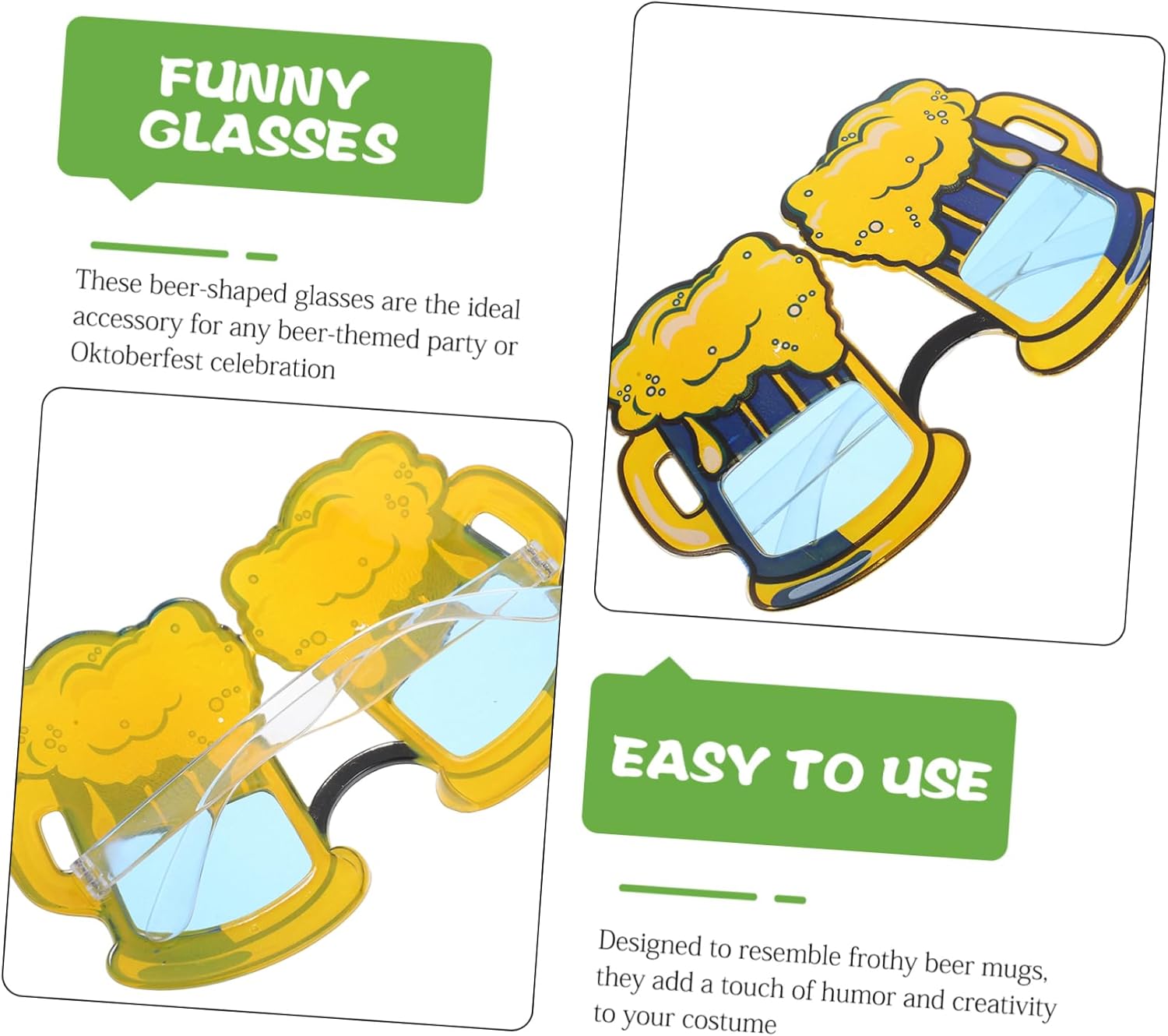 Divertimento fotografico: aggiungi un elemento divertente alle tue foto, rendendole più memorabili, decorazioni per feste, divertenti bicchieri da birra Design accattivante: bicchieri a forma di boccale di birra che ti faranno distinguere a qualsiasi evento, bicchieri divertenti per feste, decorazioni per l'oktoberfest Occasioni adatte: puoi indossare questi eleganti bicchieri per feste, carnevale della birra, feste in spiaggia, feste a base di birra, festival della birra e così via, scattare foto con i tuoi amici e goderti questa felicità insieme, forniture per feste dell'oktoberfest, bicchieri con oggetti di scena per la birra Indispensabile per le feste: ideale per aumentare il divertimento alle feste e agli incontri, accessori per foto di feste, da per costumi Ideale per le foto: ottimi per cabine fotografiche, questi sono un successo a qualsiasi evento, originali, da sole divertenti in costume