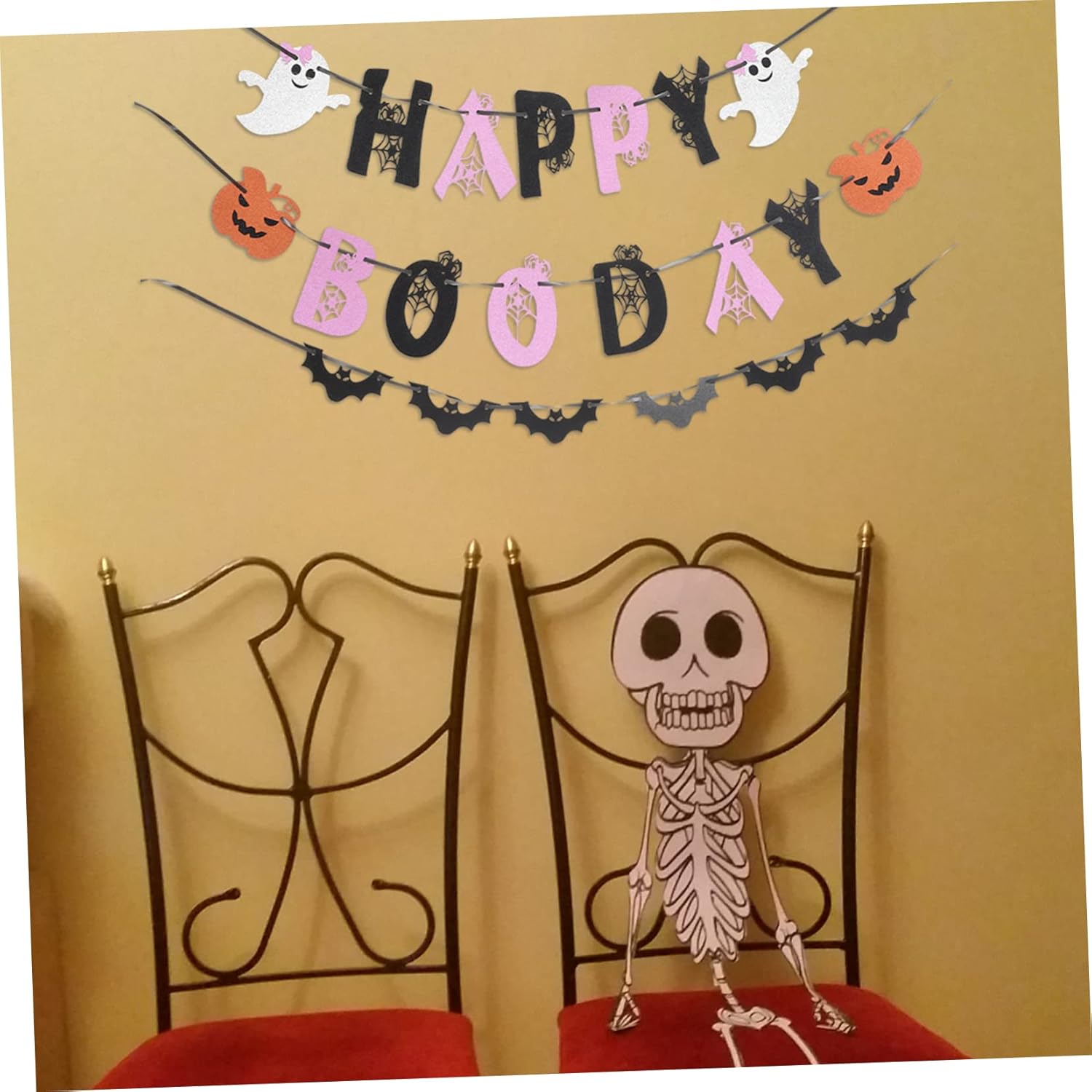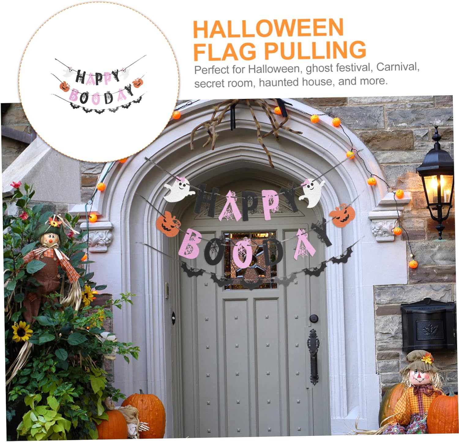Decorazione di Halloween - Possono essere appesi a pareti, finestre, rami di alberi, porte e altri luoghi, eccellente decorazione per interni o esterni, decorazione per porte. Ghirlanda di stendardi di Halloween - ornamento per aggiungere divertimento e colore extra alla festa, ornamento per striscioni. Bandiera della festa di Halloween: può essere appesa alla parete della stanza, alla finestra, alla mensola del camino e a qualsiasi cosa tu possa immaginare come decorazione domestica. DECORAZIONE BANNER PER LA CASA - Per Halloween, festa dei fantasmi, carnevale, casa segreta, infestata e altro ancora, ghirlanda di Halloween. Decorazione d'interni - Realizzata in materiale di alta qualità, abbastanza resistente e abbastanza leggera da poter essere appesa con poco sforzo, sospiro da appendere ad Halloween.