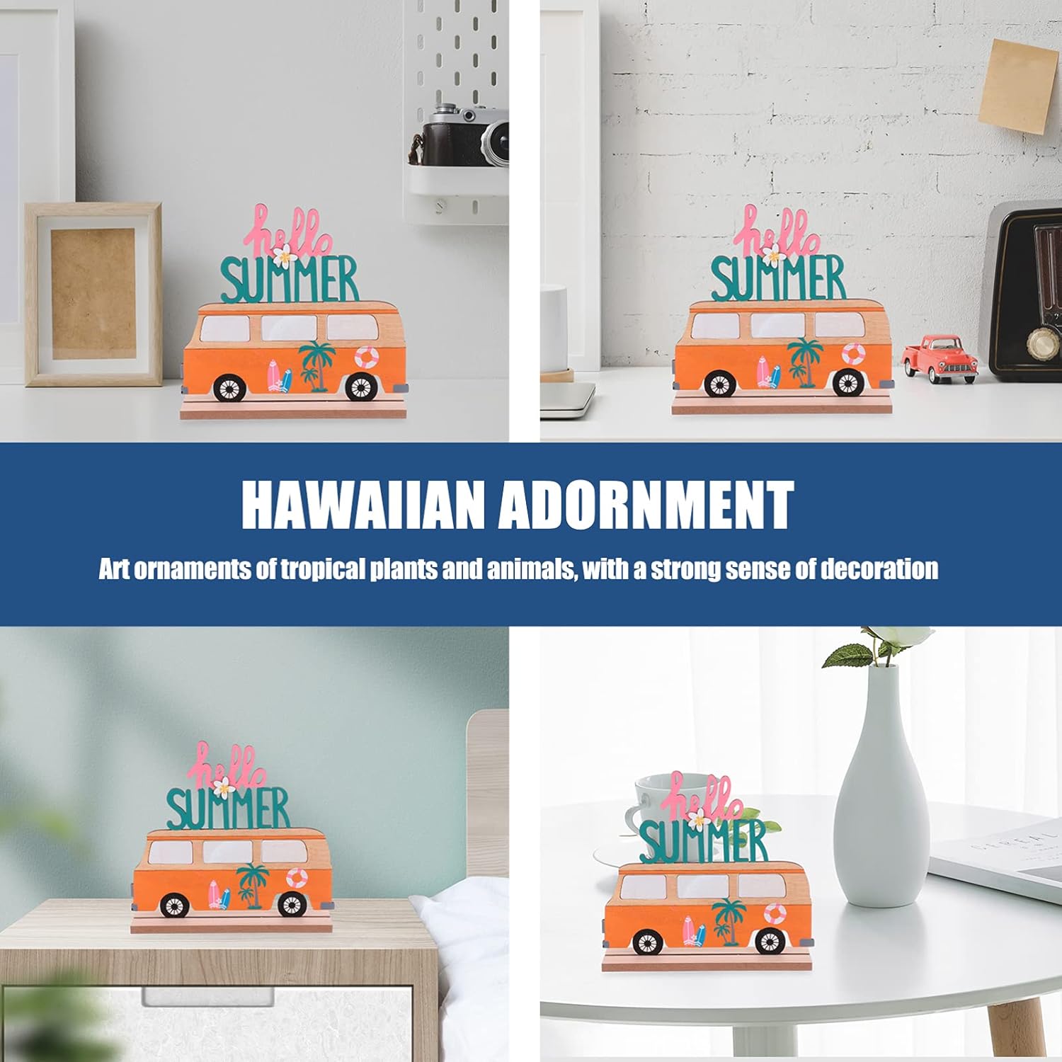 Decorazioni per feste hawaiane Forniture per feste tropicali Puoi inviarlo ai tuoi amici, familiari, colleghi come regalo di inaugurazione della casa, regalo di compleanno, ecc. Adatto per feste hawaiane, oggetti di scena per la decorazione della casa, decorazioni per finestre. Cartello con palma Realizzato in legno e ferro, resistente e pratico per un uso a lungo termine. Decorazione da tavola per feste tropicali È leggera, di dimensioni ragionevoli, facile da trasportare, non occupa molto più spazio. Targa da tavolo rustica Il design creativo di foglie e animali, la pregevole fattura, i bellissimi colori, rendono la sua popolarità. Cartello in legno "Estate"