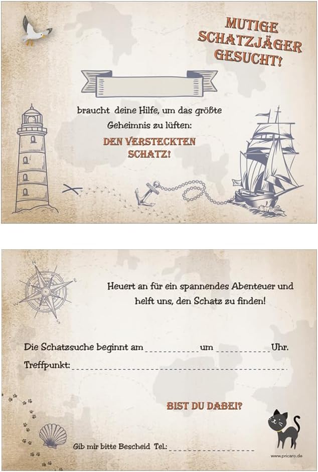 Variante: caccia al tesoro Contenuto: 10 pezzi Formato: DIN A6 (148 x 105 mm), formato orizzontale Carta: 300 g/m2, opaca Info: lingua tedesca/Altri design sono disponibili nel nostro assortimento